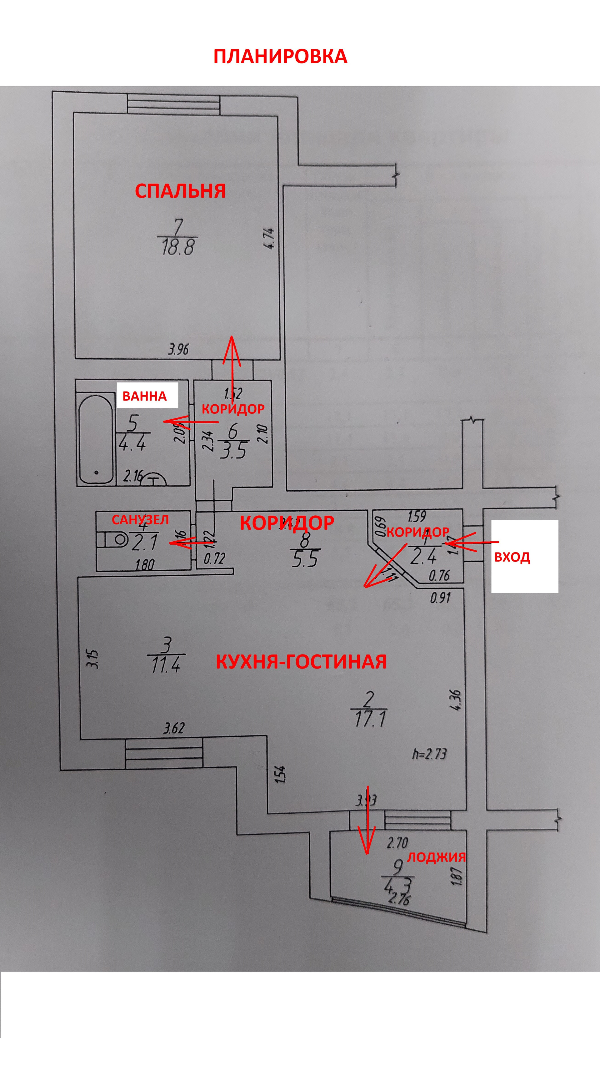 О квартире: квартира индивидуальной планировки, просторная кухня-гостиная 28,5 м² с встроенным кухонным гарнитуром и техникой, комната 18,8 м², высота потолков 2,73 м., два санузла, один санузел, совмещенный с ванной 4,4 м²., два коридора 5,5 м², и 3,5 м², в коридоре обустроен вместительный шкаф-купе, на полу ламинад, в санузлах кафель, в квартире установлены счетчики холодной и горячей воды, газа и электричество, плита газовая. Чистый подъезд, хорошие соседи, уютный двор.