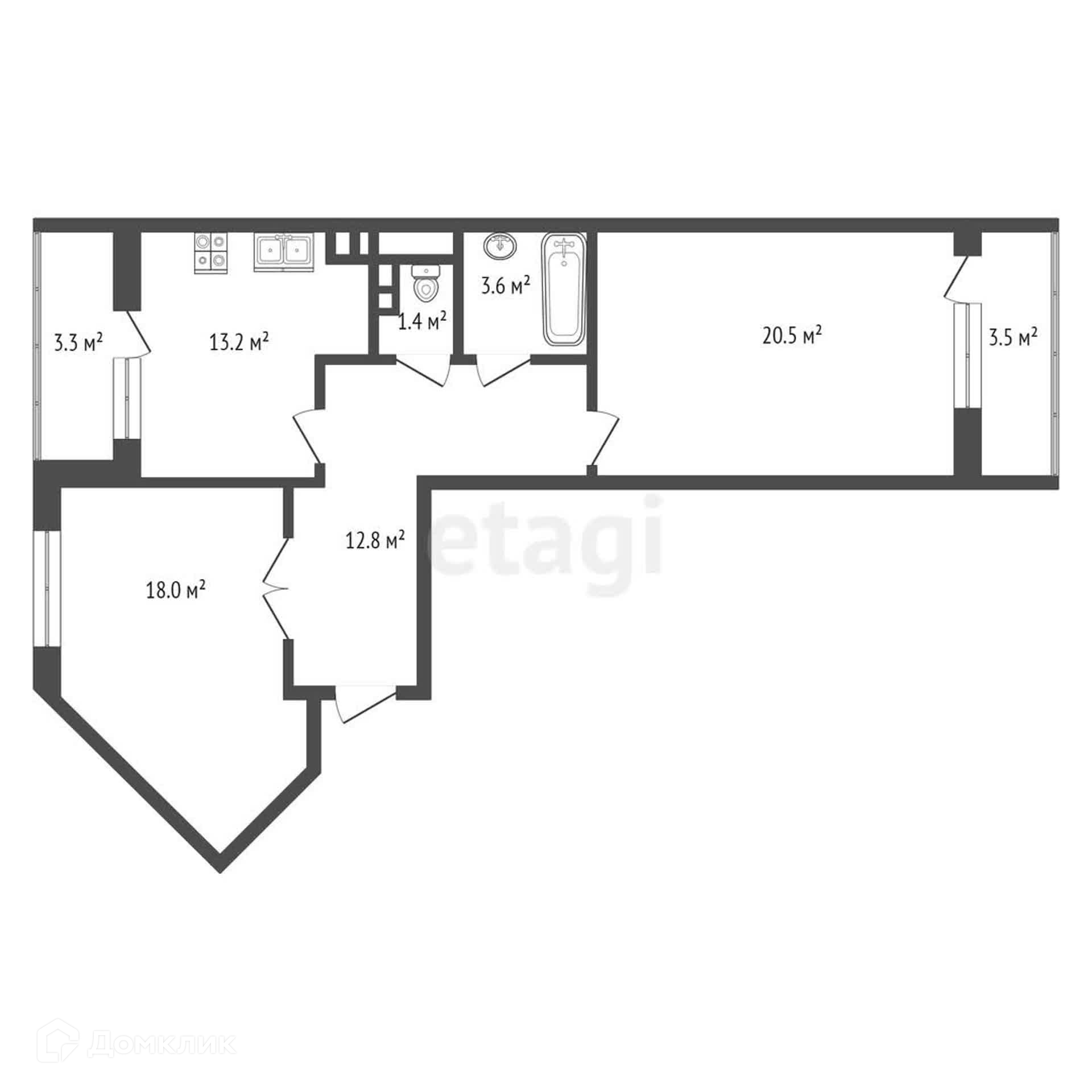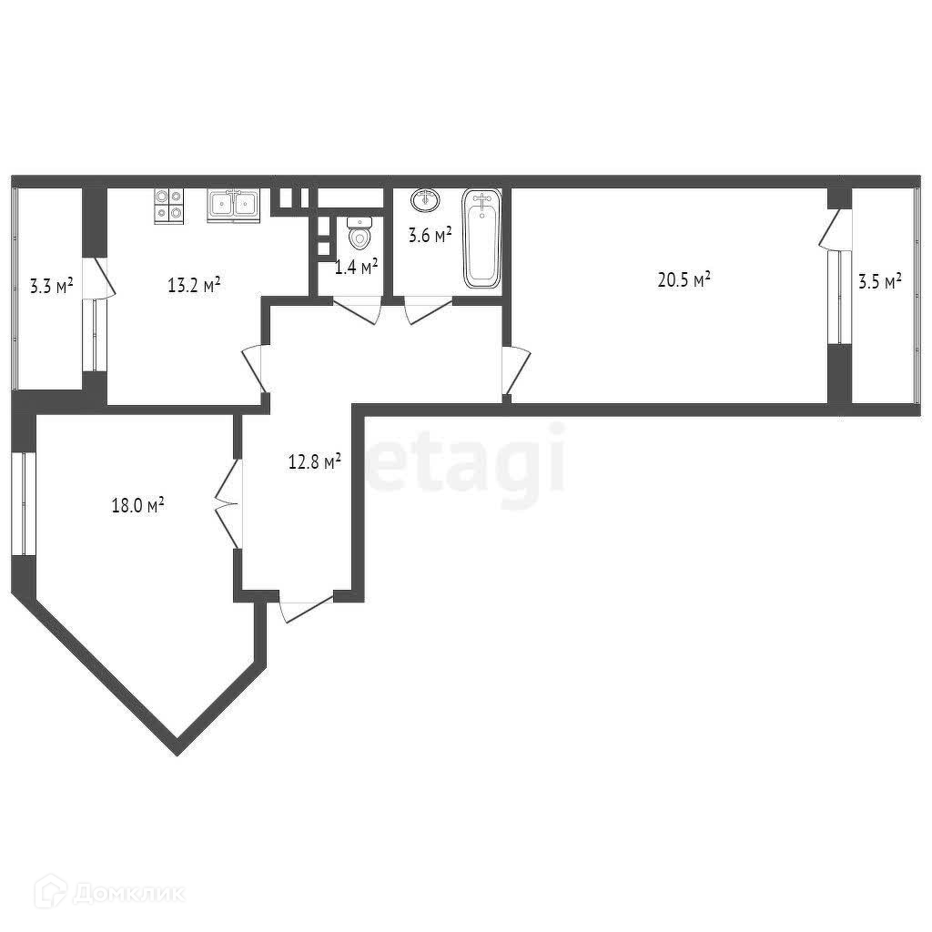 2-комнатная квартира, 69.44 м2, этаж 3 / 5, на продажу в Ханты-Мансийске, Объездная улица, 8
