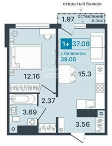 Общая площадь 37.08 м2