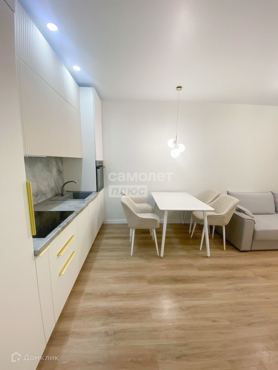 Ремонт в квартире сделан в скандинавском стиле, из материалов отличного качества. На полу ламинат, стены покрашены в светлых приятных тонах.