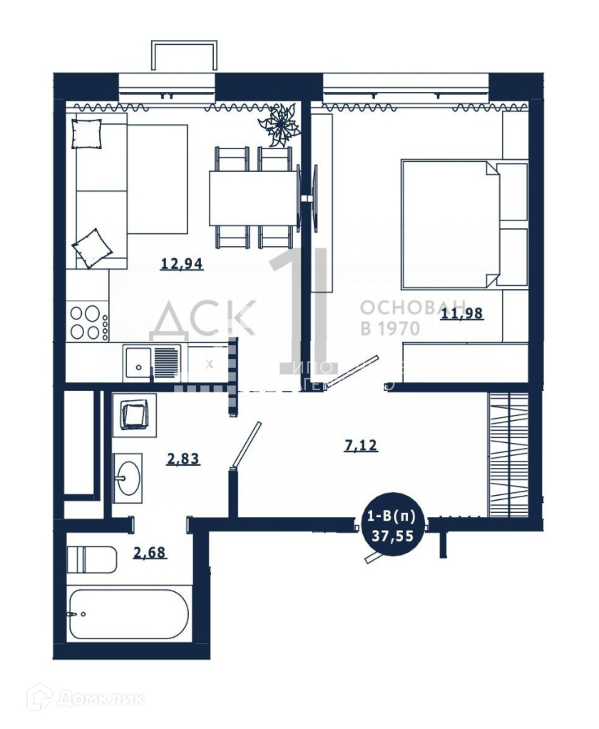 Общая площадь 37.55 м2