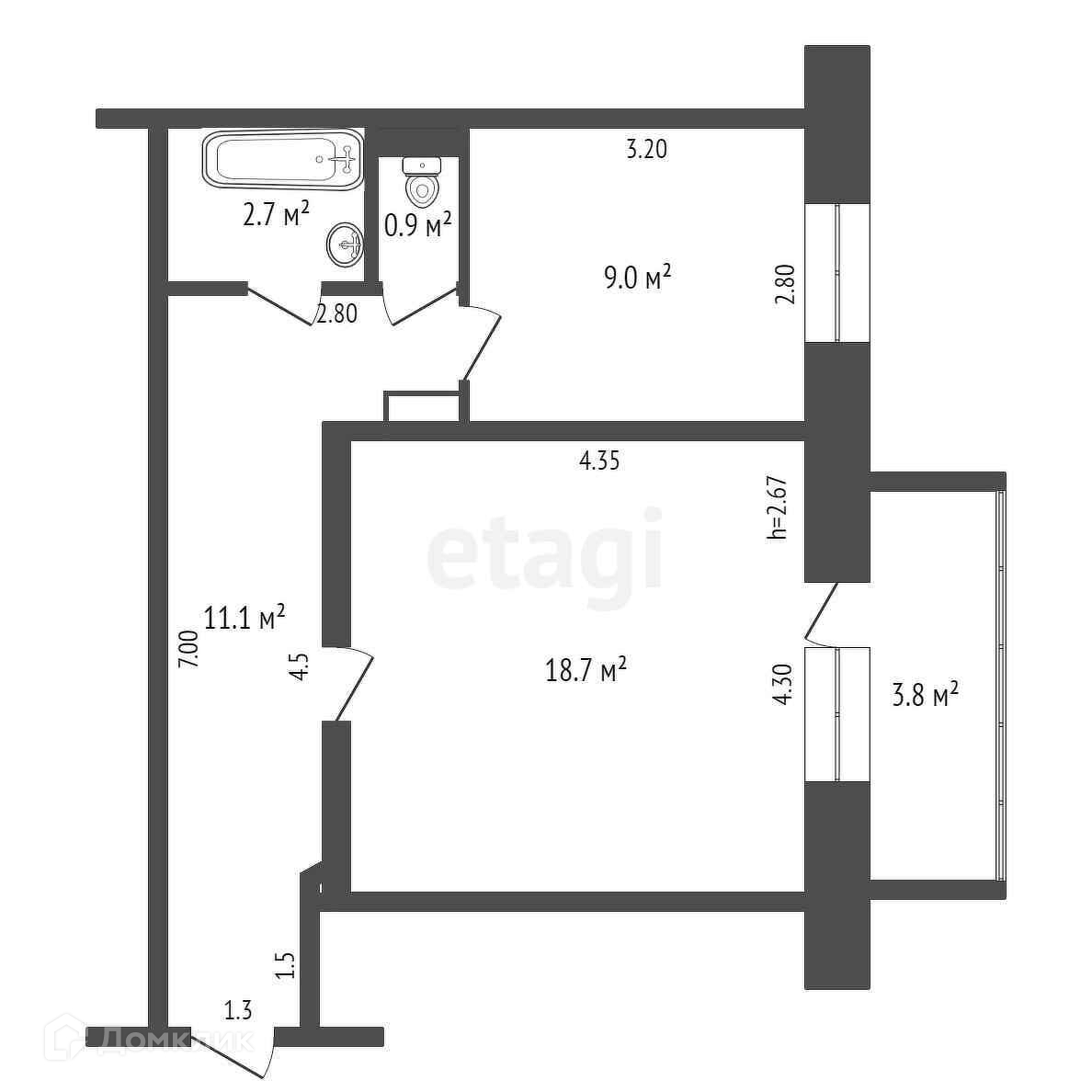 Общая площадь 30 м2