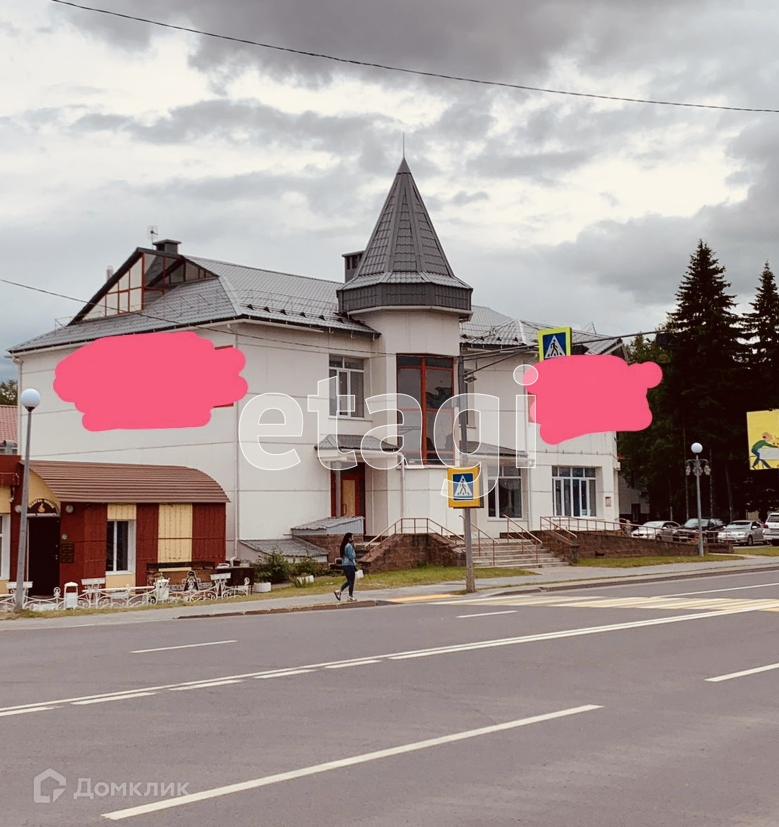 площадь 730 м кв. +12 соток земли, в том числе собственная стоянка.
