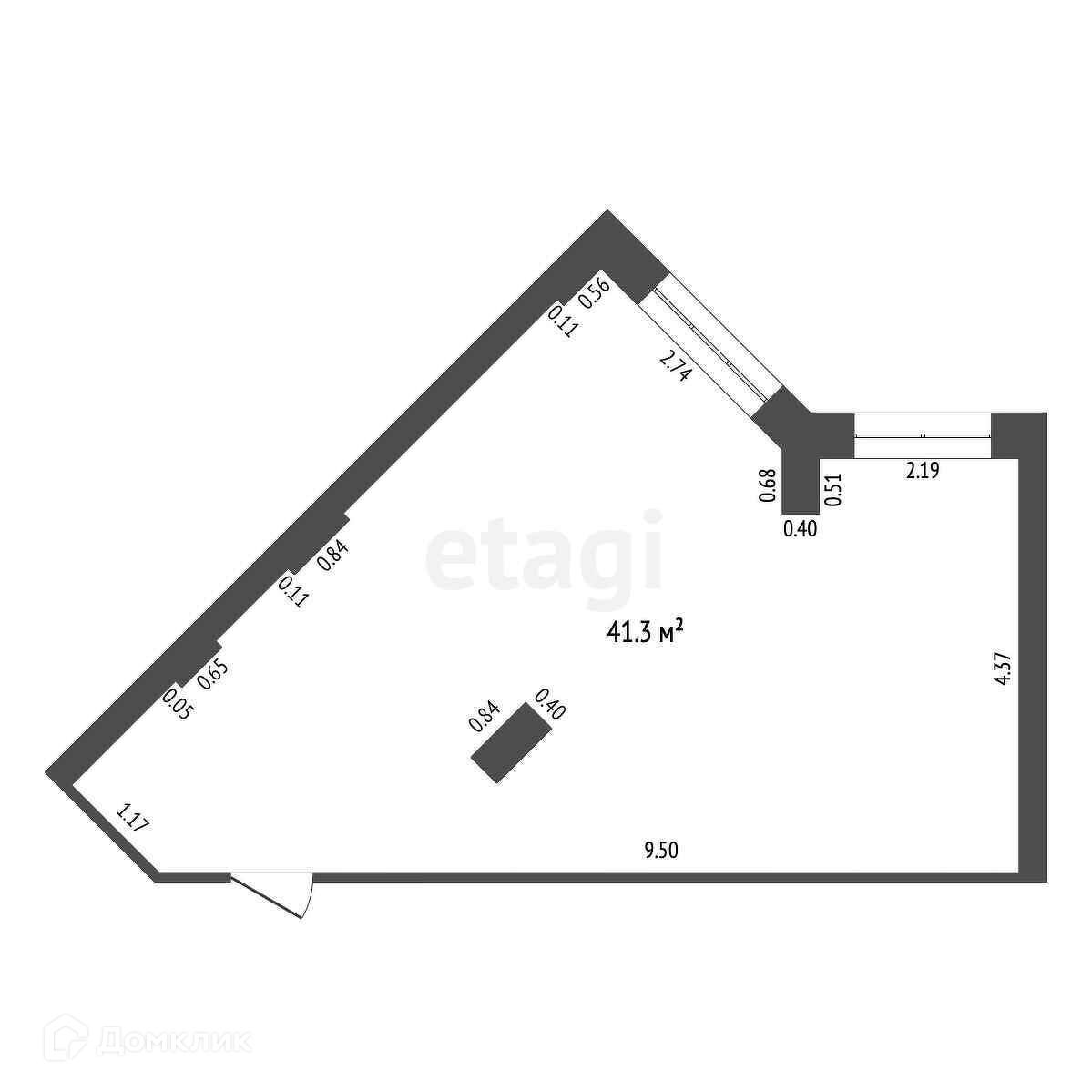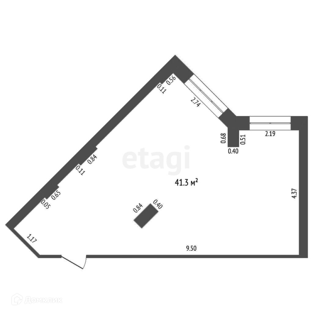 Общая площадь 41.3 м2