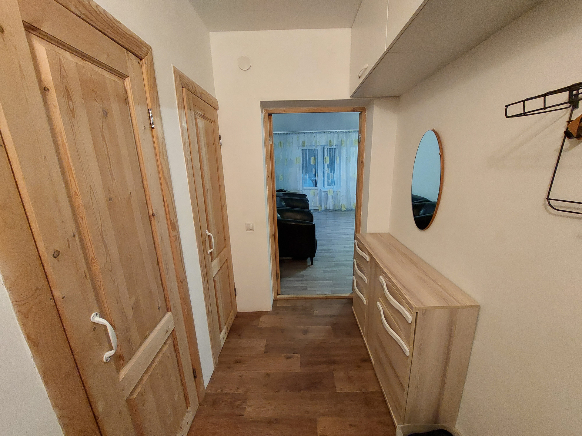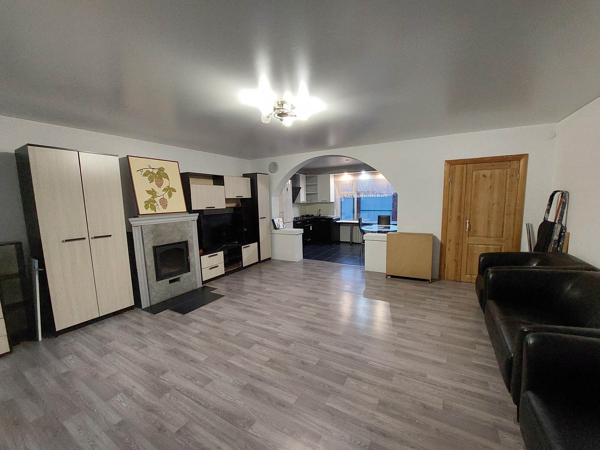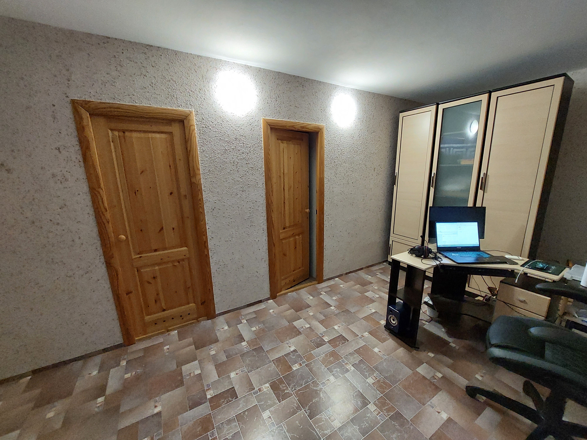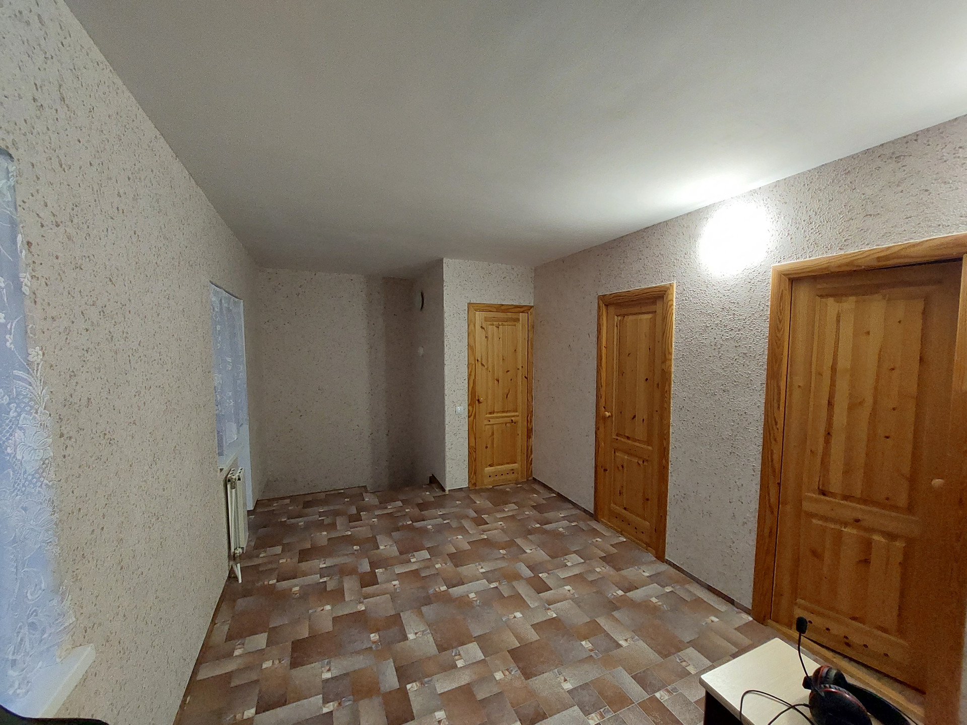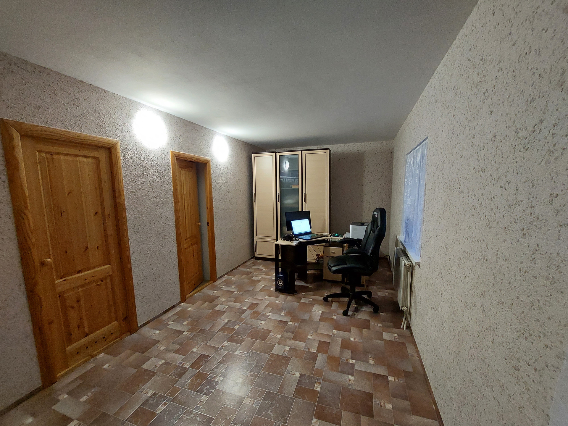 Ремонт полностью делали для себя. Потолок гипсокартон и натяжной, пол – линолеум, в санузлах кафель.