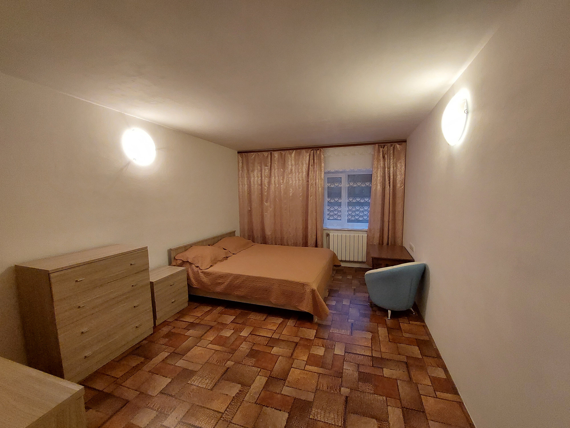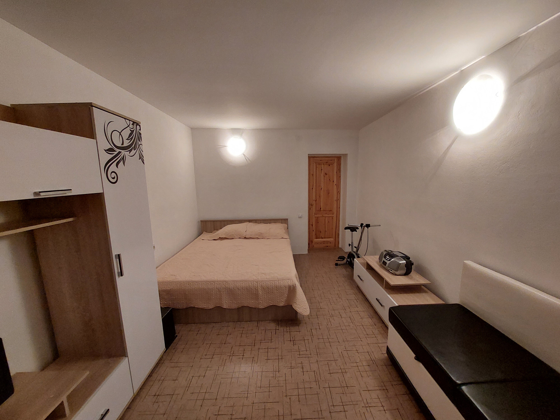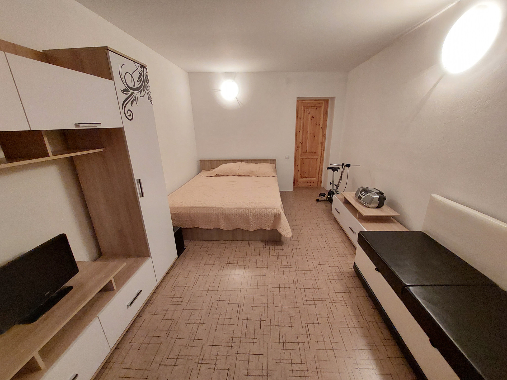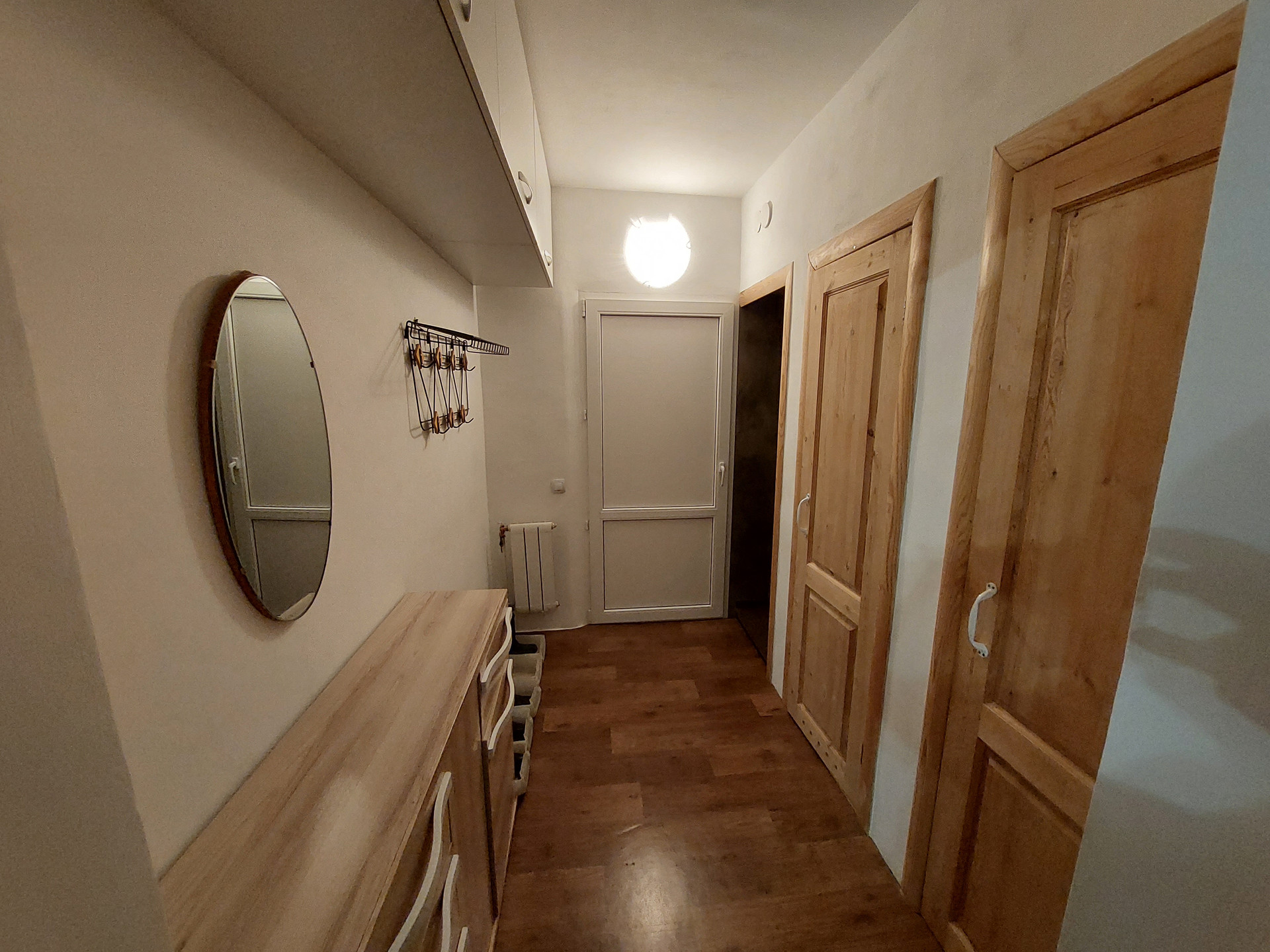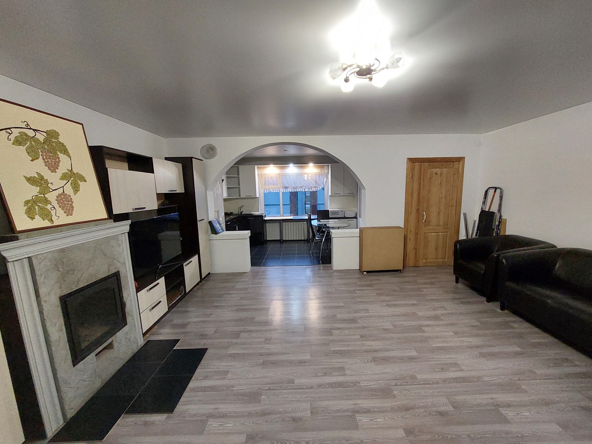 Ремонт полностью делали для себя. Потолок гипсокартон и натяжной, пол – линолеум, в санузлах кафель.