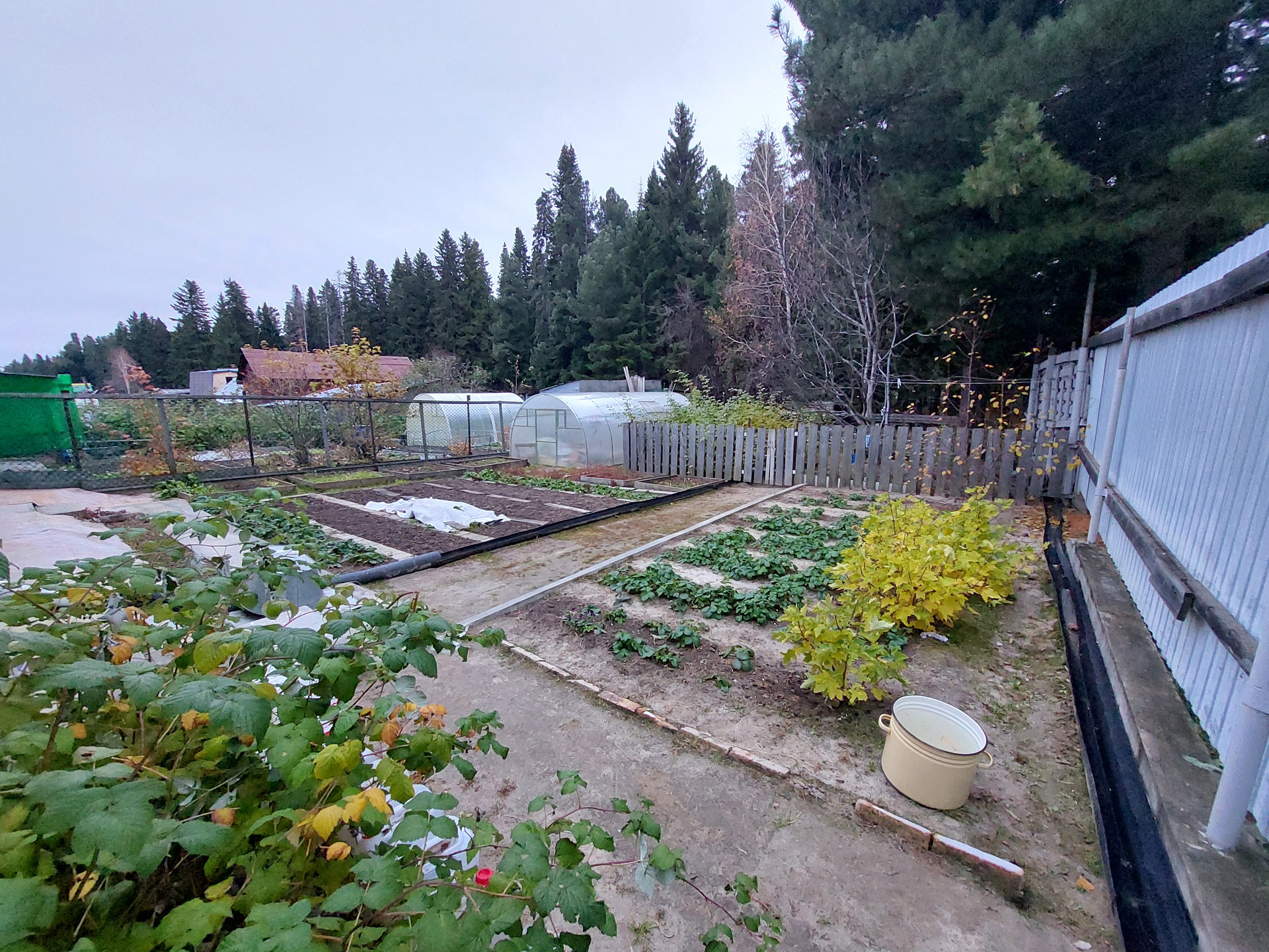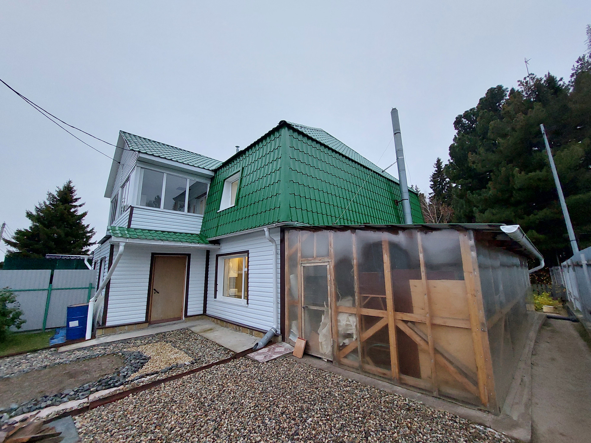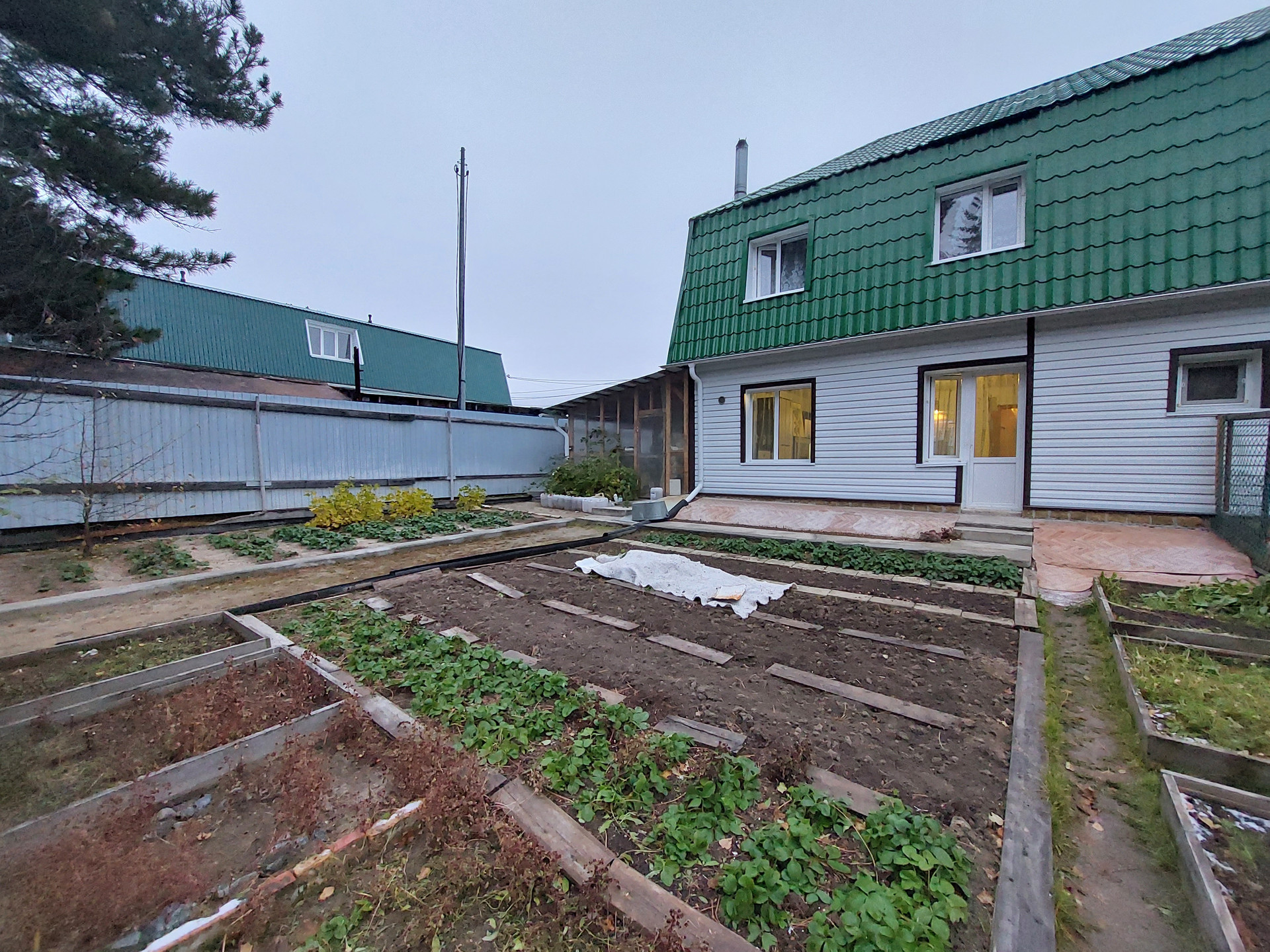 Перед входом и за домом имеется ухоженный земельный участок 461 кв. м., на котором размещен свой полисадник (теплица, грядки, навес).