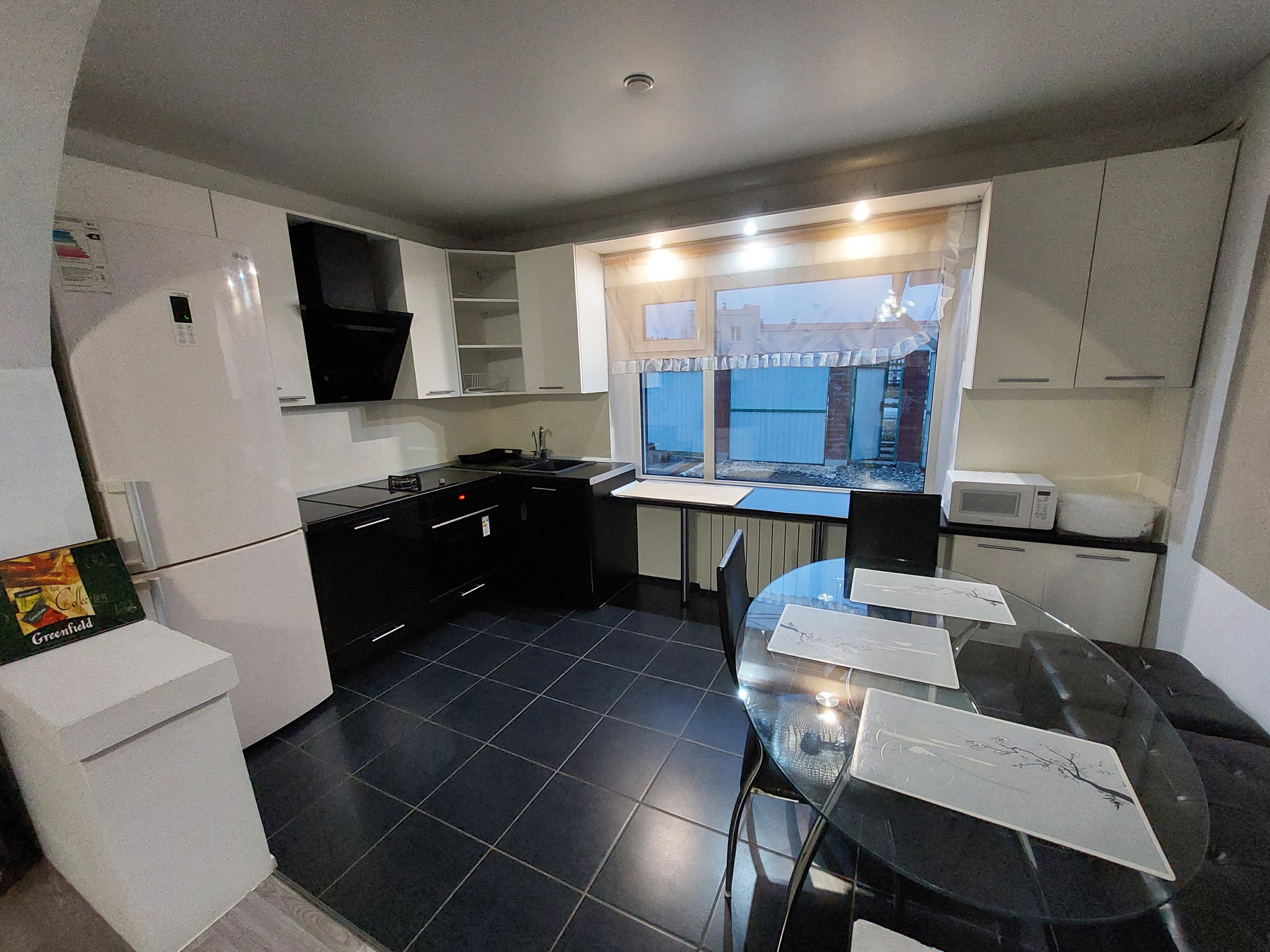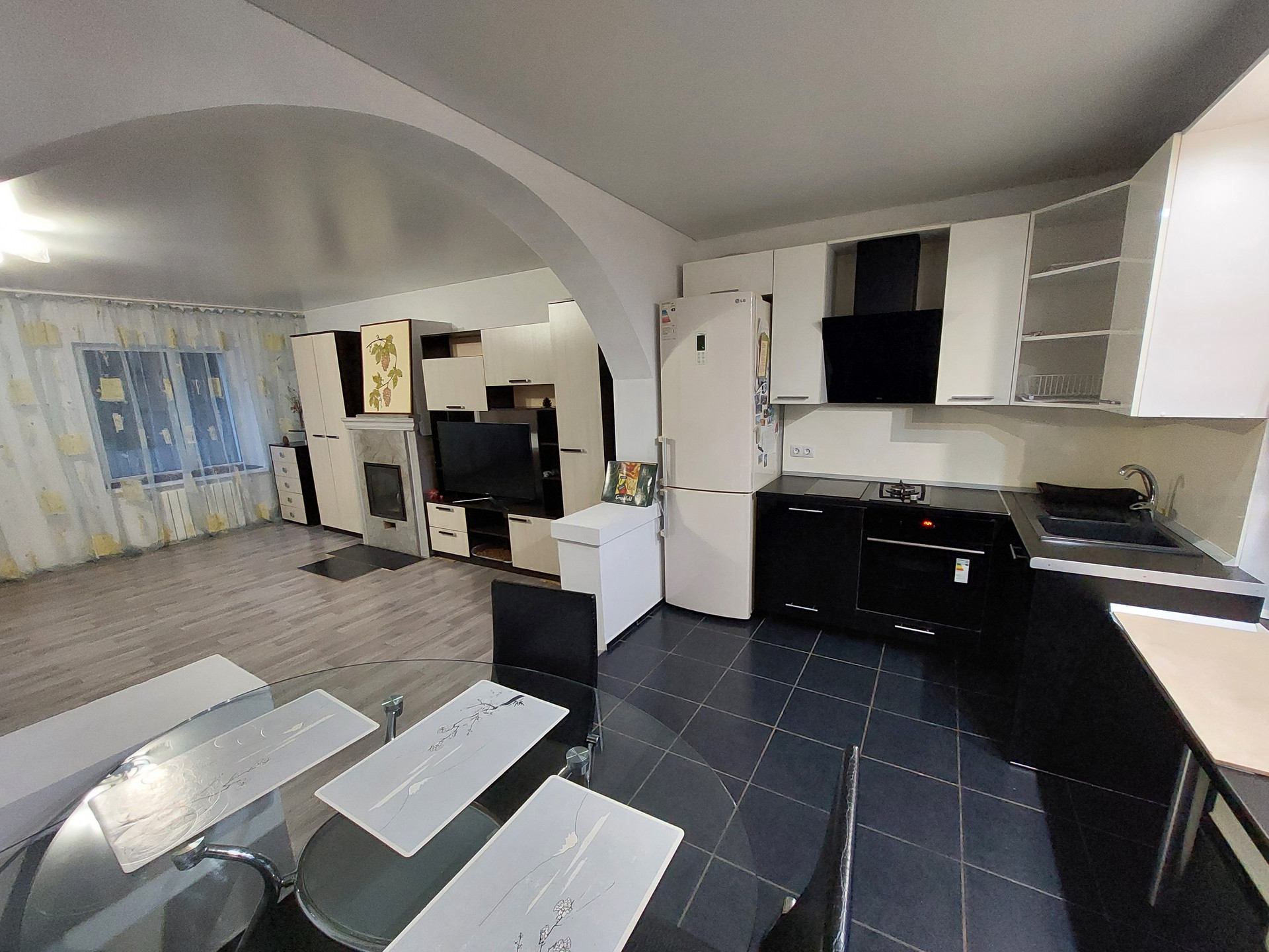 Техника: варочная панель и электрическая, вытяжка, посудомоечная машина, холодильник, стиральная машина.