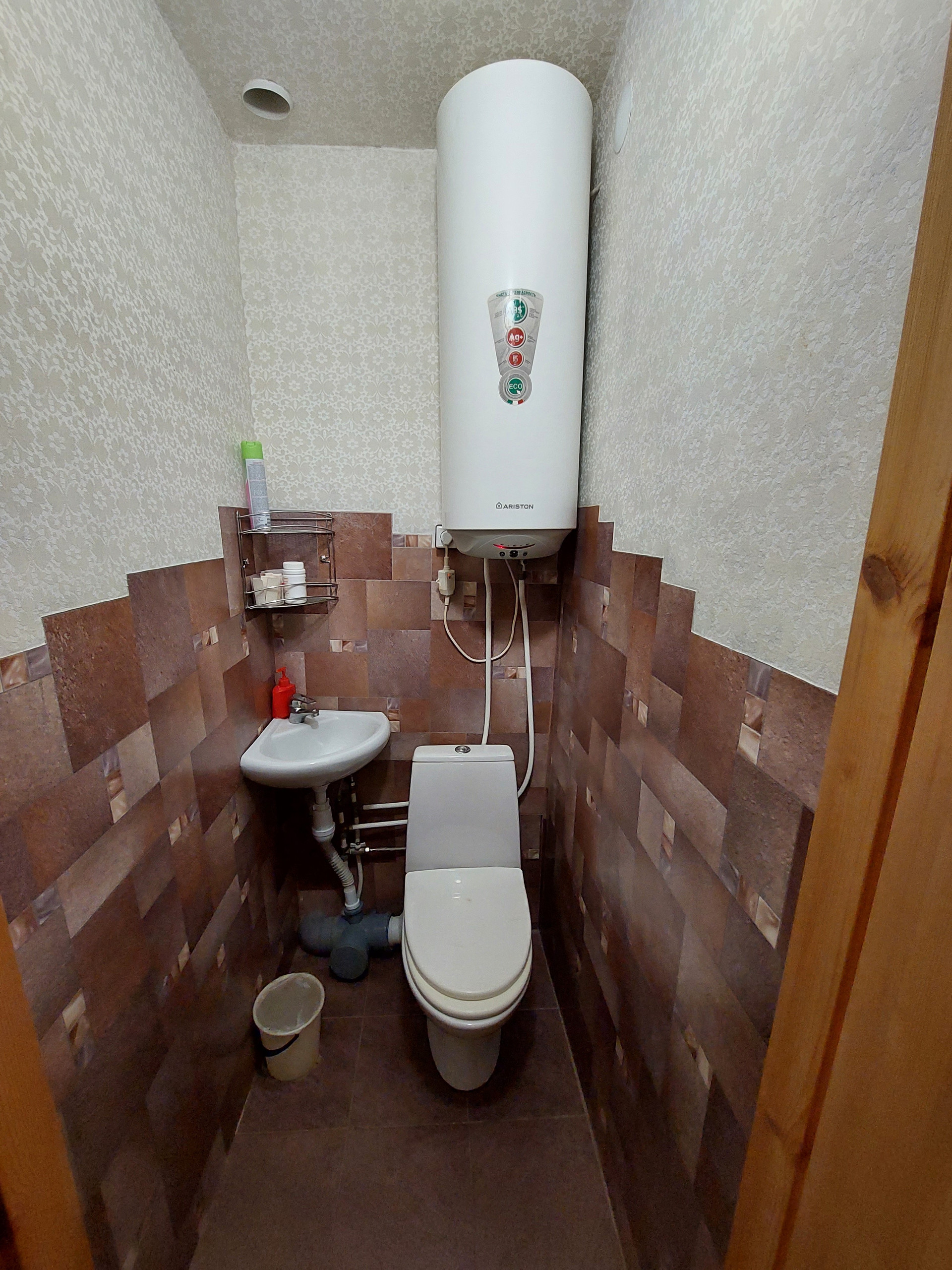 Из коммуникаций: водопровод и электричество централизованное, обогрев дома электрический котел, подогрев воды через бойлер 60 литров, для приготовления пищи баллонный газ, канализация септик на 12 кубов общий на 2 квартиры.