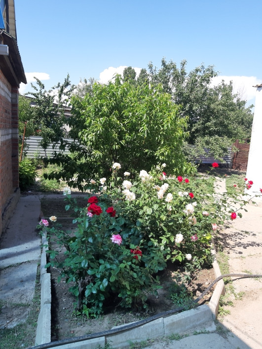 Во дворе гараж, летняя кухня, сарай, курятник, плодовые деревья, розы.