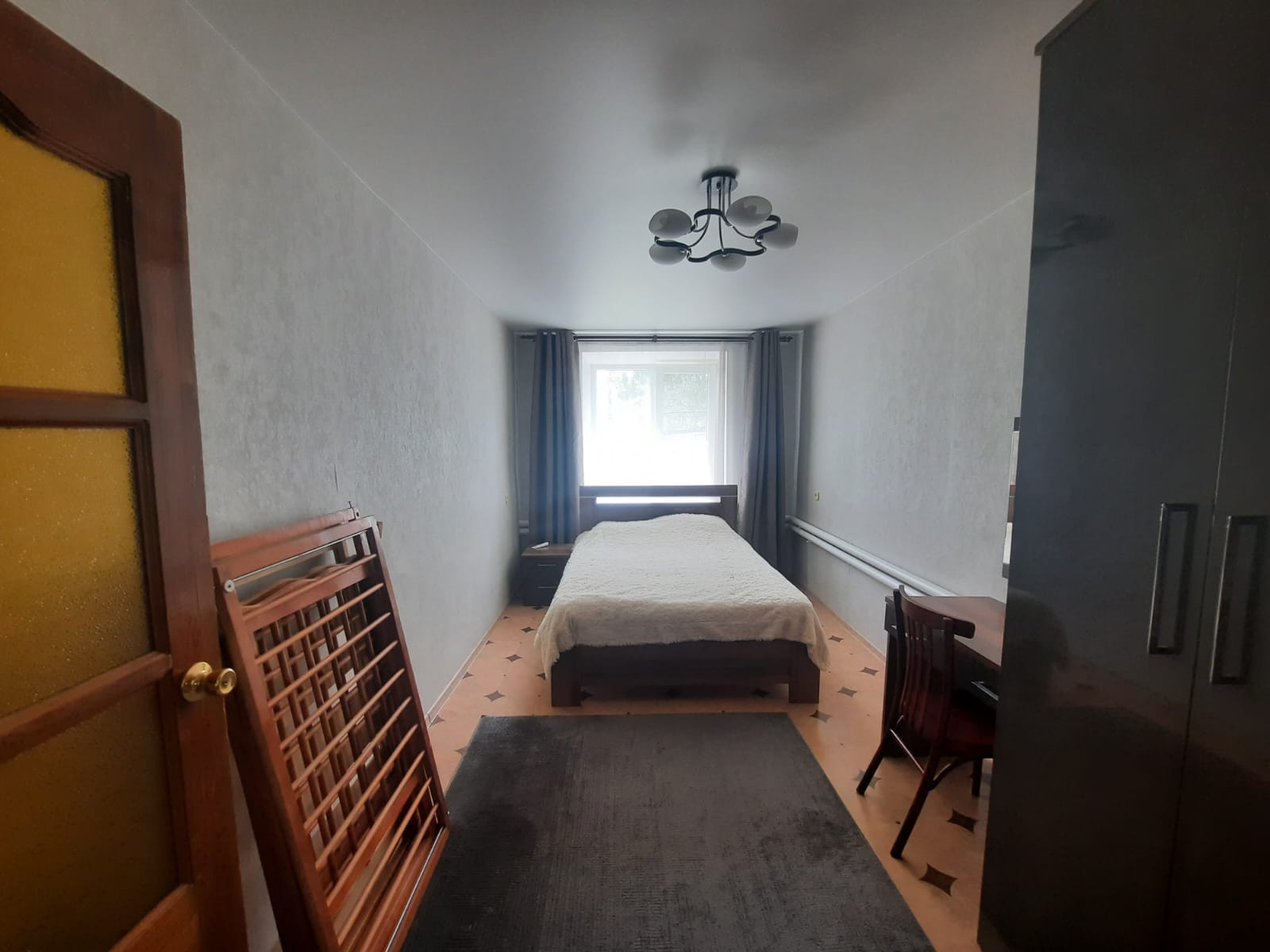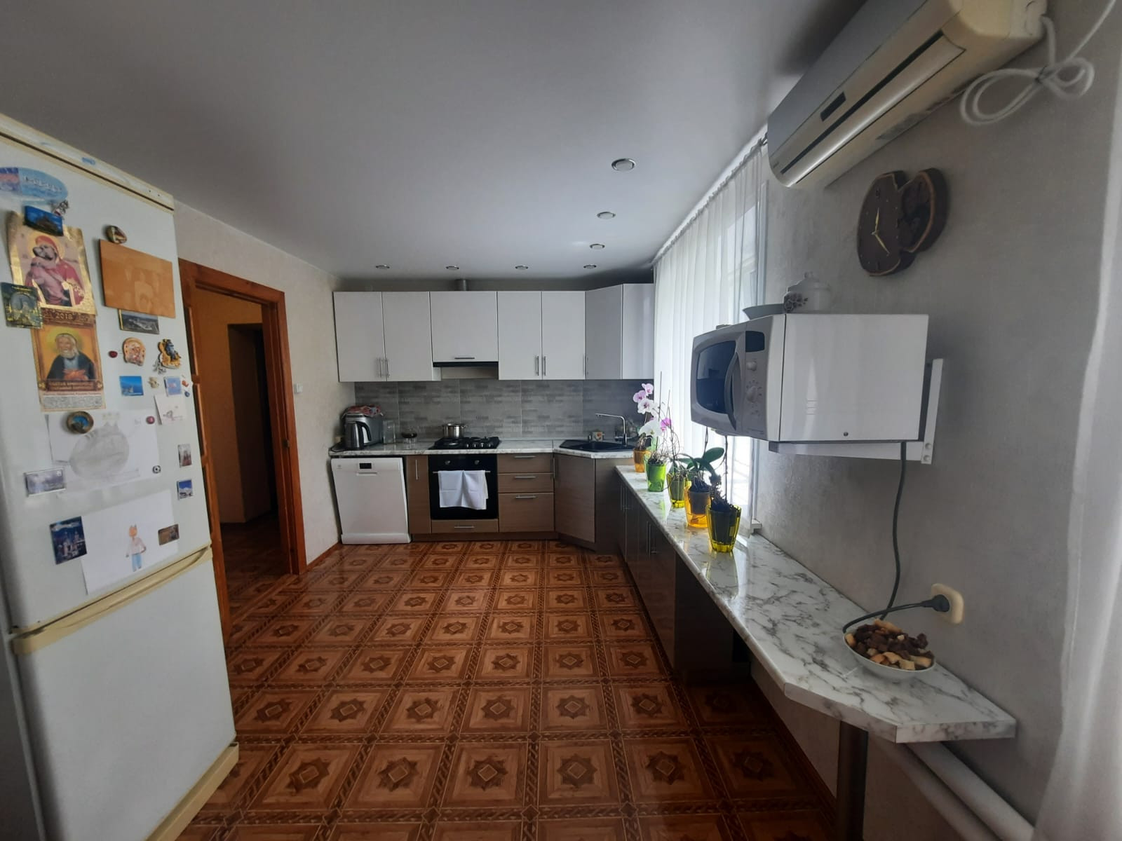 2 спальные комнаты, просторный зал, санузел в доме, душевая кабина, новая встроенная кухня и кухонная техника! Много что остается по мебели, видеонаблюдение!