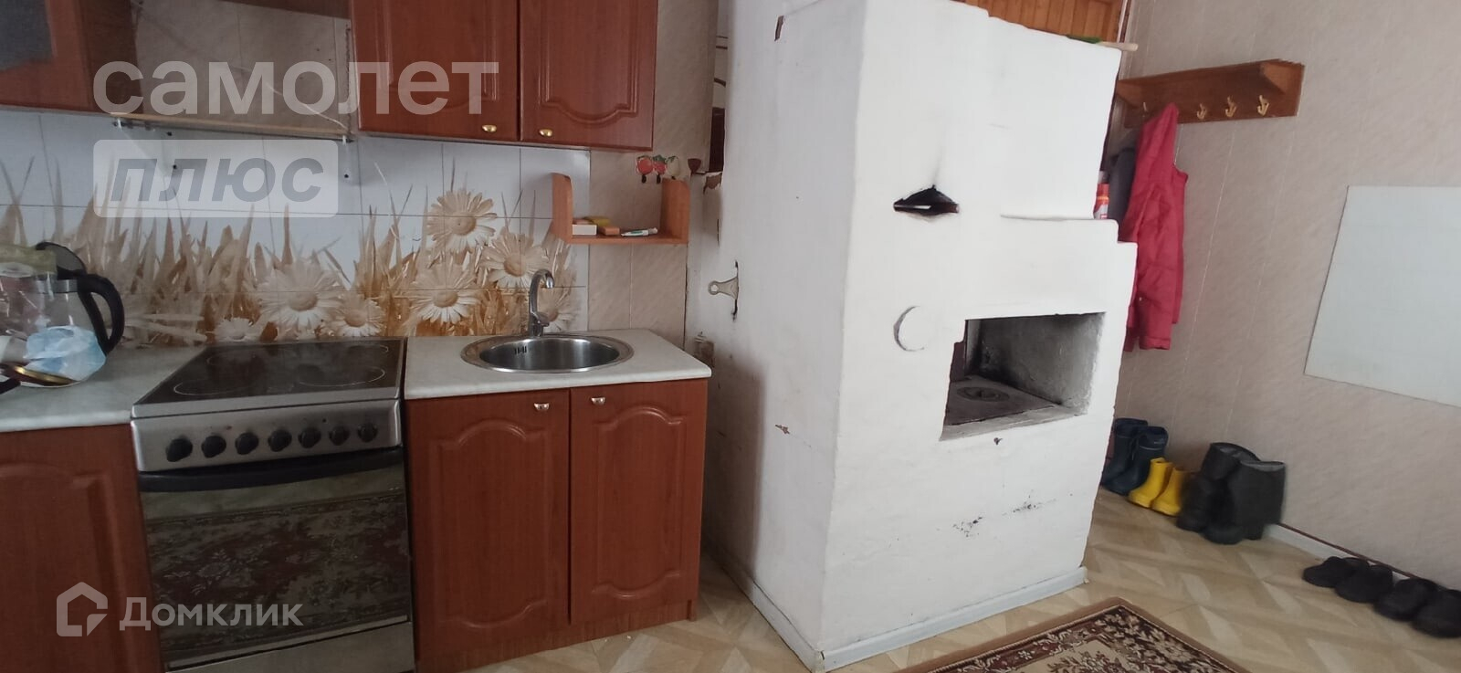 Отопление - электрический котел и русская печь.