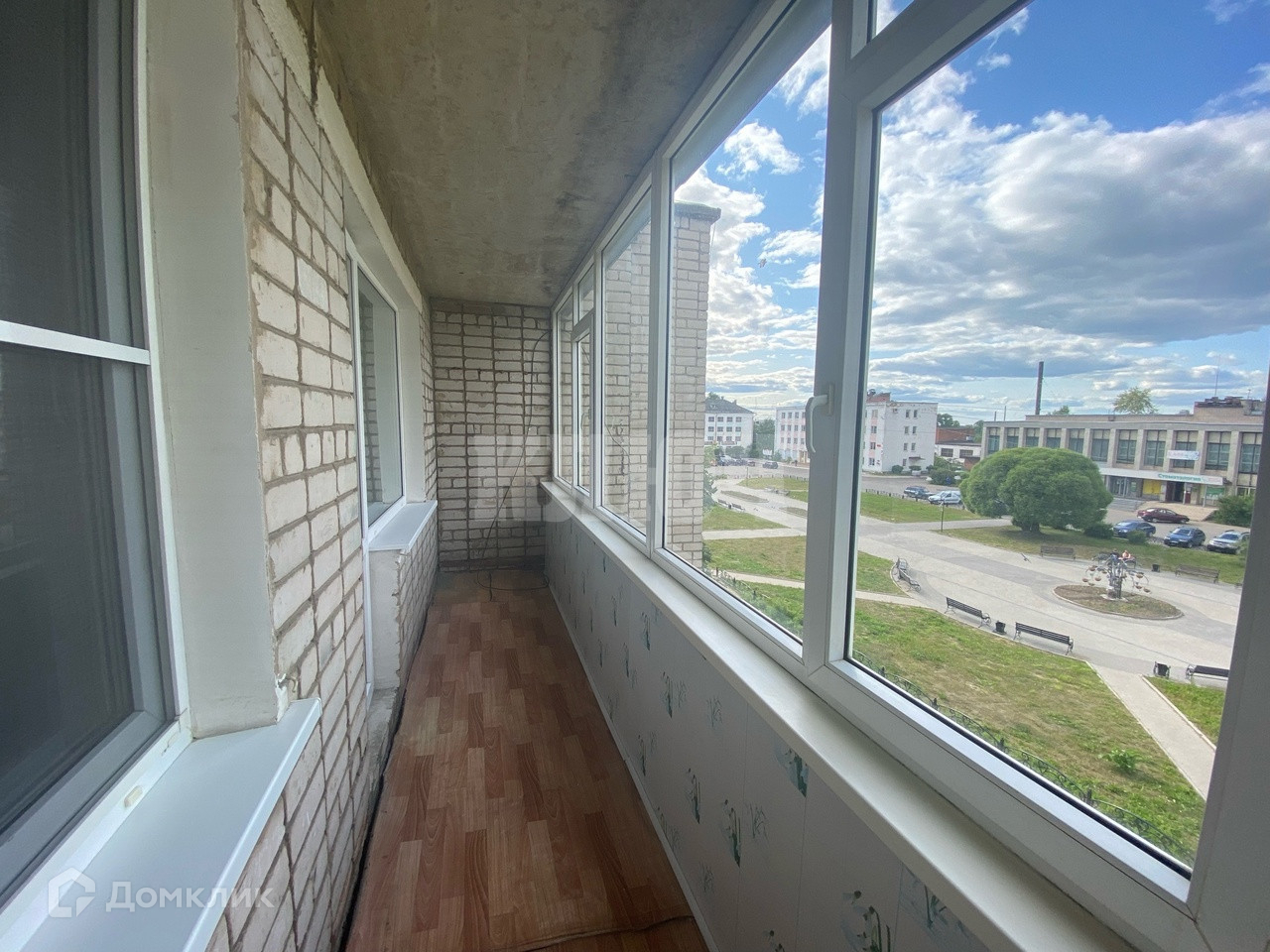 Просторная лоджия застеклена.
