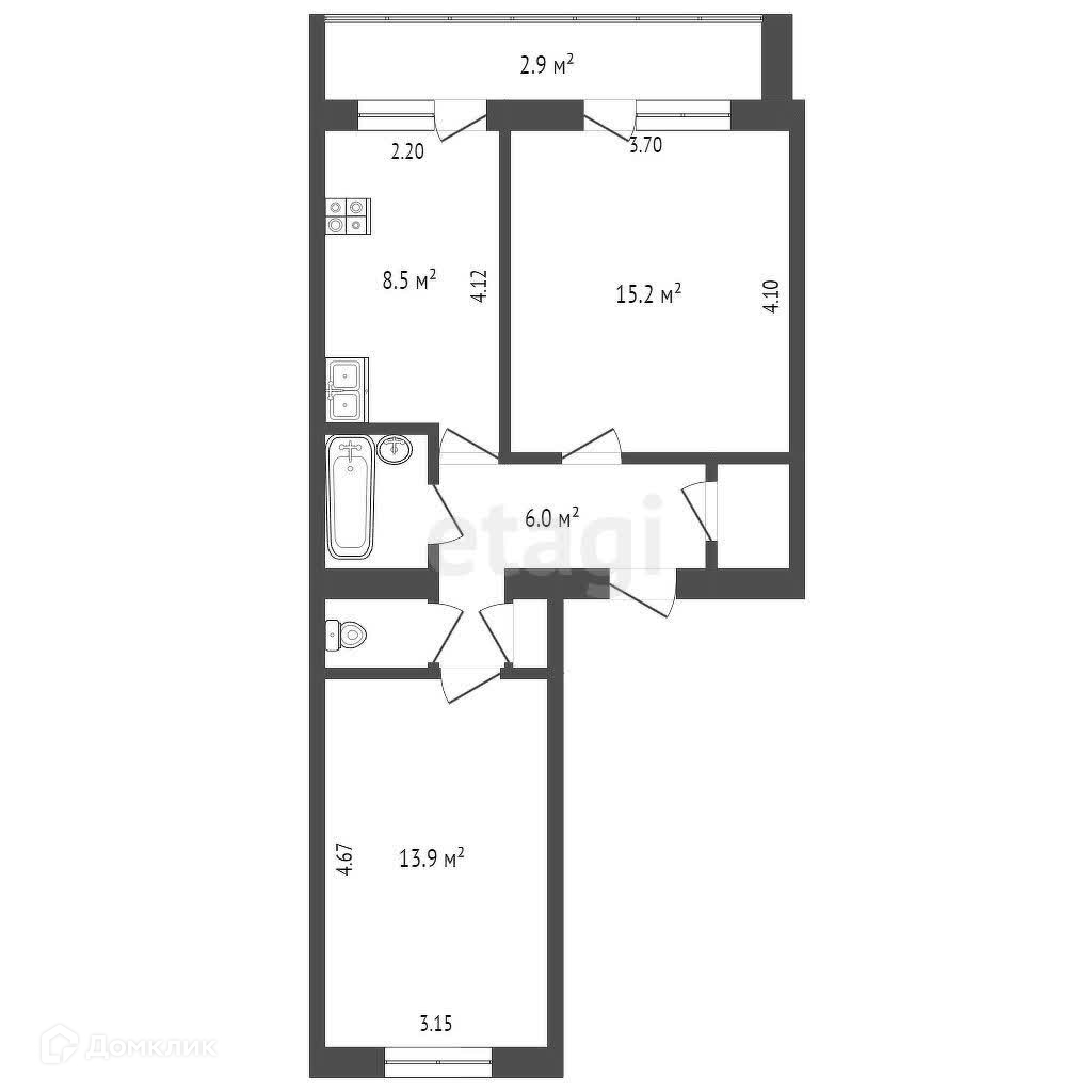 Общая площадь 49.6 м2