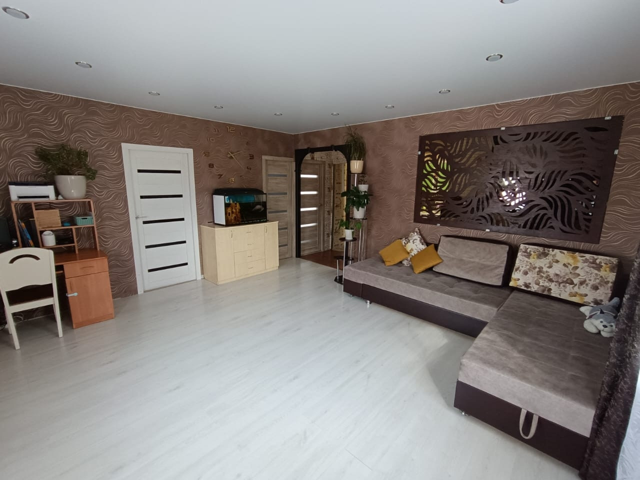 Удобное расположение, в шаговой доступности: школа, детский сад, аптека, почта, остановки, продовольственные и хозяйственные магазины. Также в доме новым владельцам остаётся угловой кухонный гарнитур с посудомойкой, водонагреватель на 100 л. и встроенная прихожая.