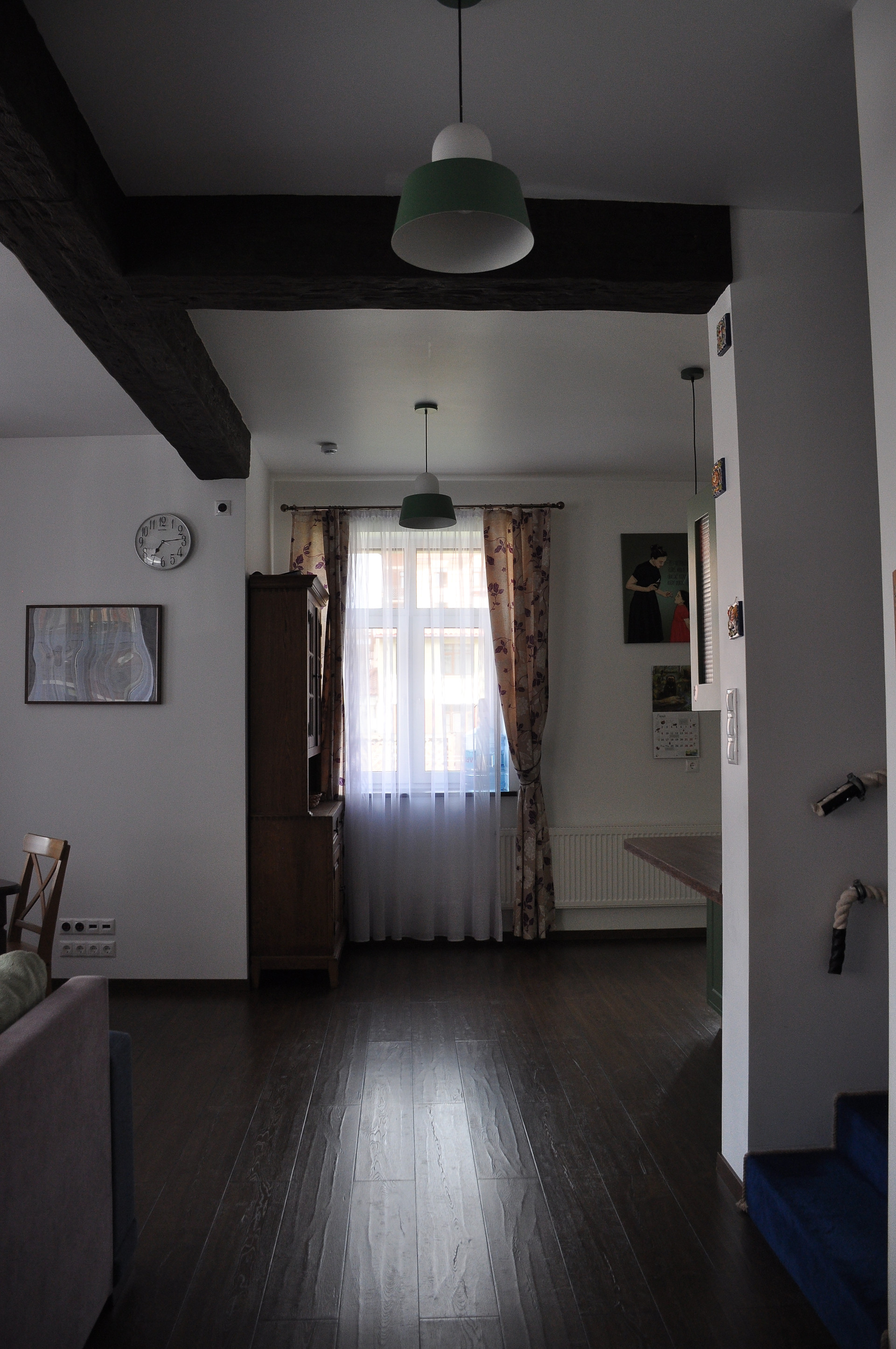 Первый этаж: гостиная (30м2) и кухня (12 м2) + санузел
