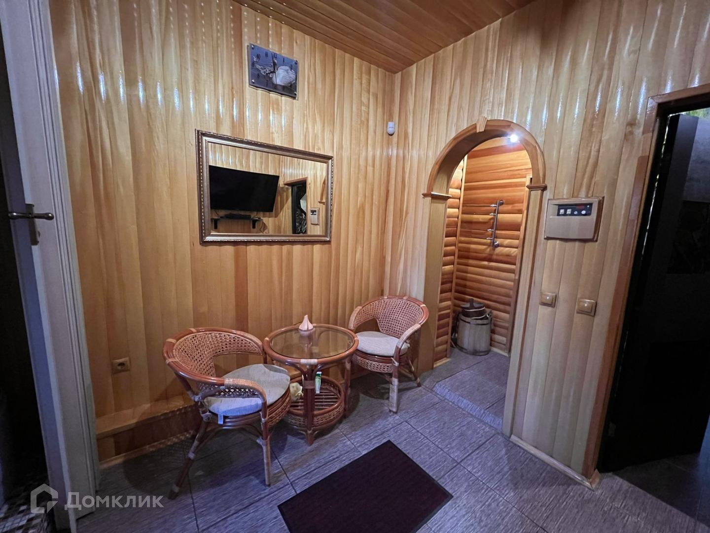 Располагаются 2 теплые мансарды с кожаной мебелью и с организованными зонами хранения вещей. Санузел с душевой кабиной и стиральной машиной.