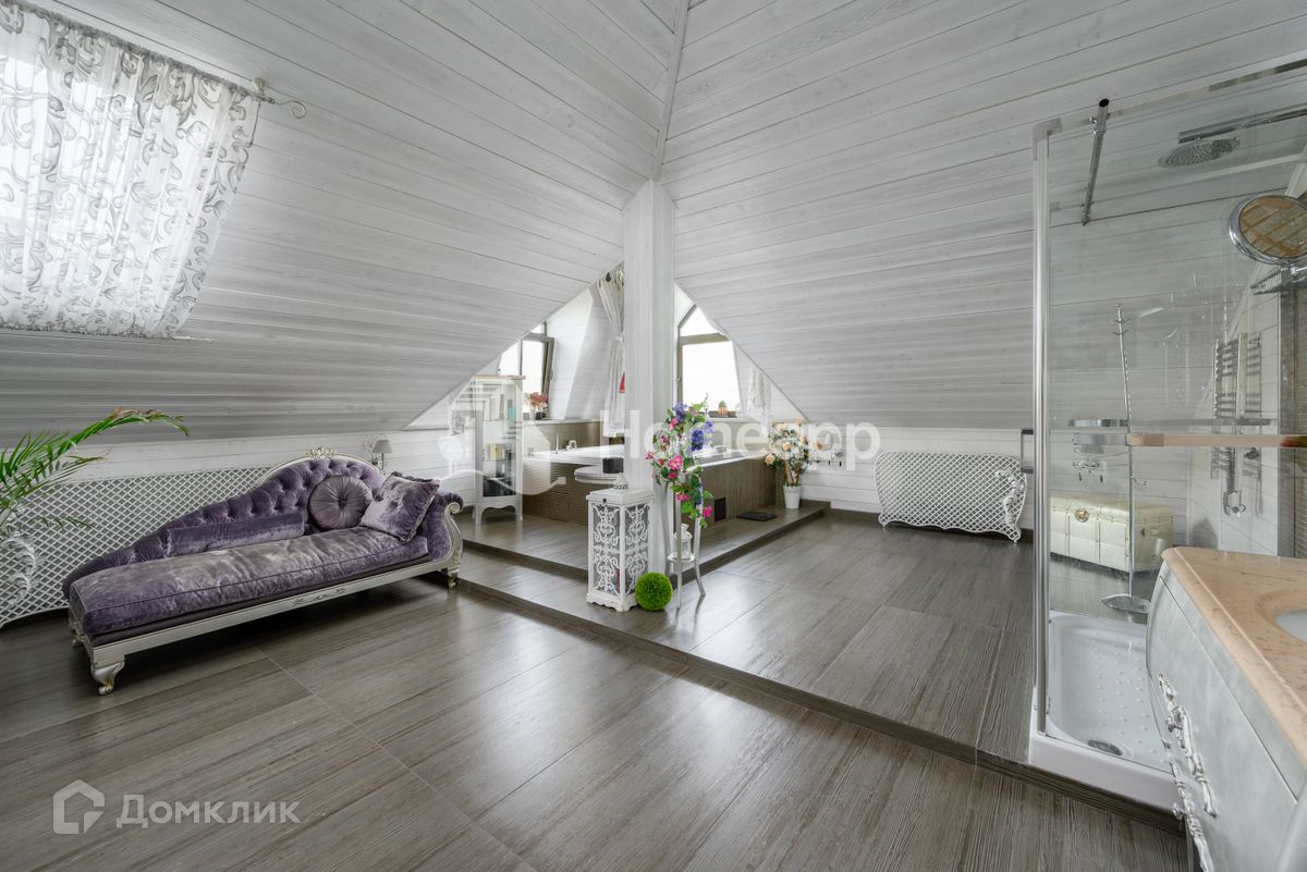 - на третьем, мансардном этаже, располагаются хозяйская спальня 36,7 м² с гардеробом 21,4 м² и роскошная ванная комната 45 м²;
