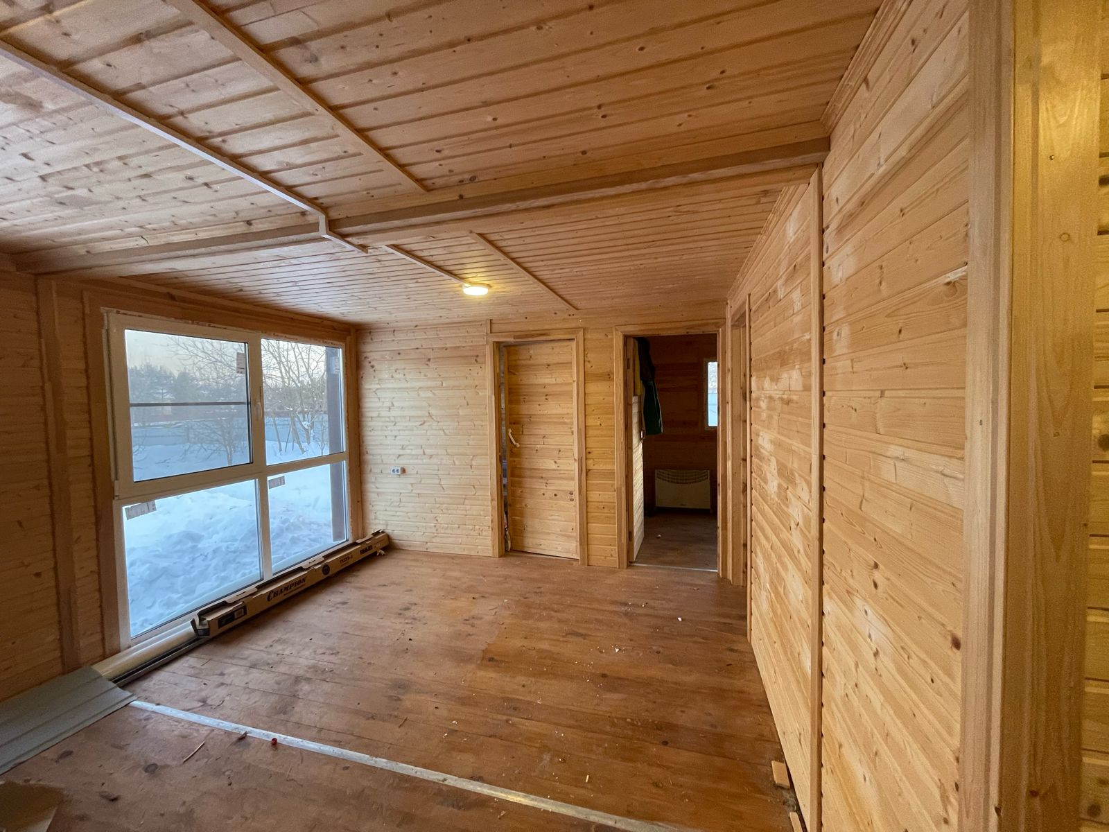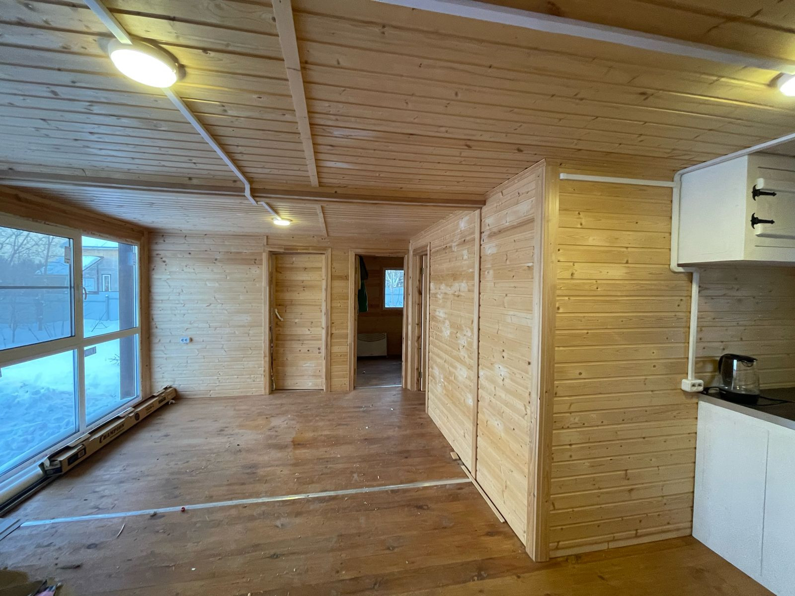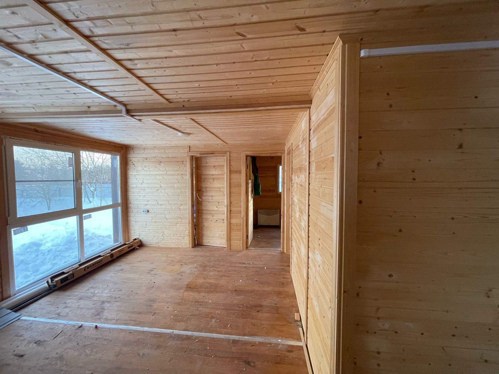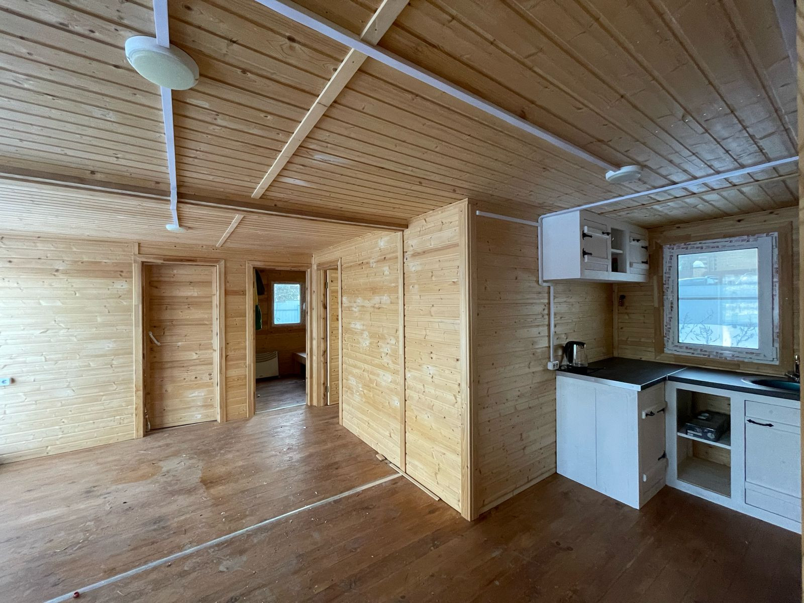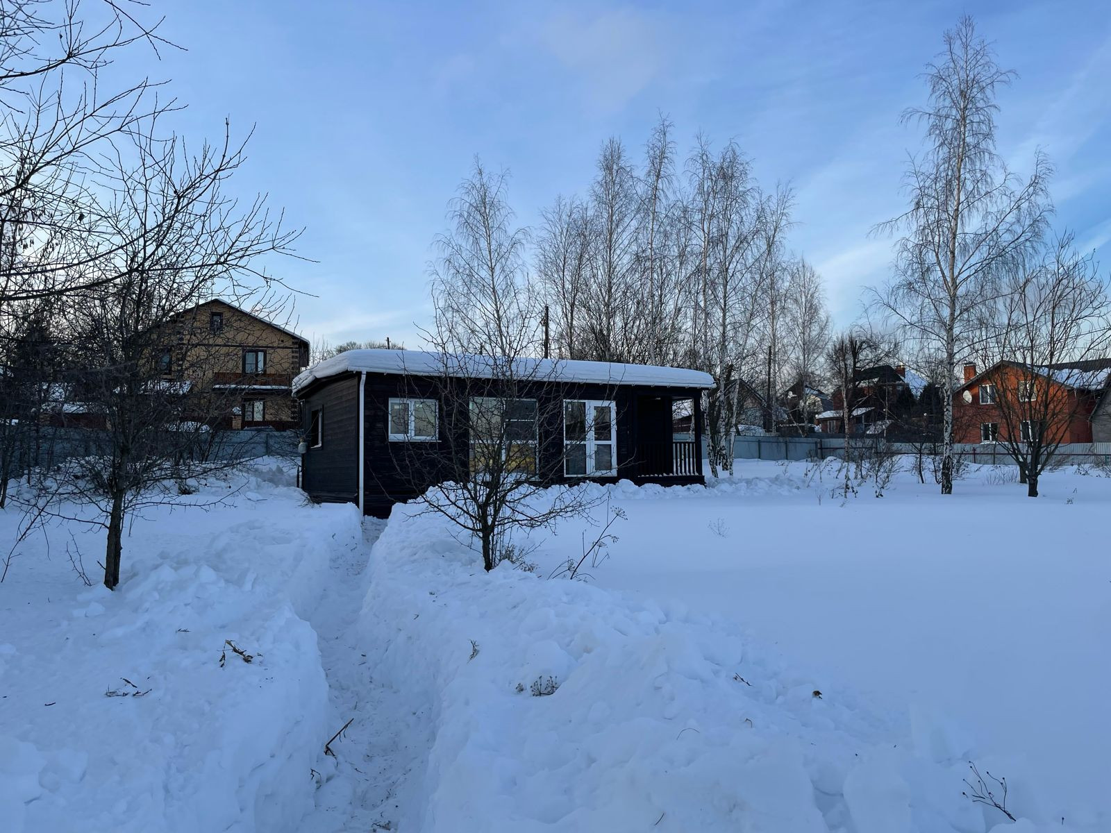 Дизайнерский домик 47 кв.м, очень теплый, с терассой, деревянный, панорамные окна с тройными стеклопакетами. В доме три комнаты, большая кухня-гостиная, санузел, два входа, строился в 2020 году для собственного проживания. Подведено электричество 3 фазы - 380В. Вода по границе участка (получены все технические условия на подведение). Газификация в процессе. К следующему отопительному сезону - пуск газа. Прописка со всеми льготами в доме возможна без каких-либо проблем.