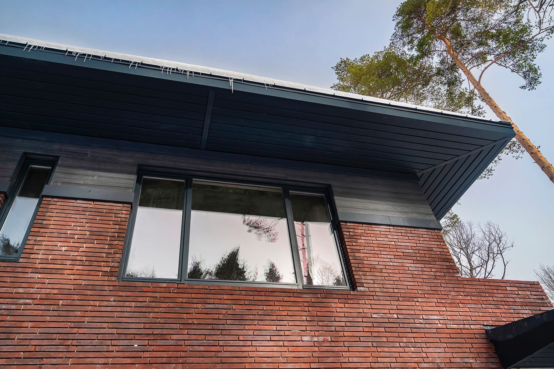 - Облицовка клинкер/кирпич + лиственница второй этаж.
