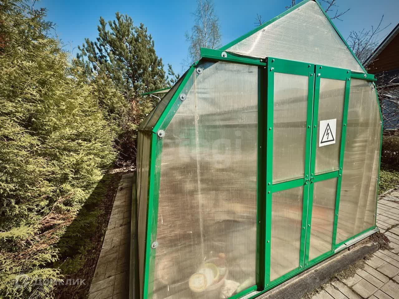 На участке есть теплица и сарай для хранения инвентаря. Посажены плодовые деревья и кустарники: черешня, вишня, орешник, смородина, малина, виноград, растут декоративные цветы, туи, пихты.