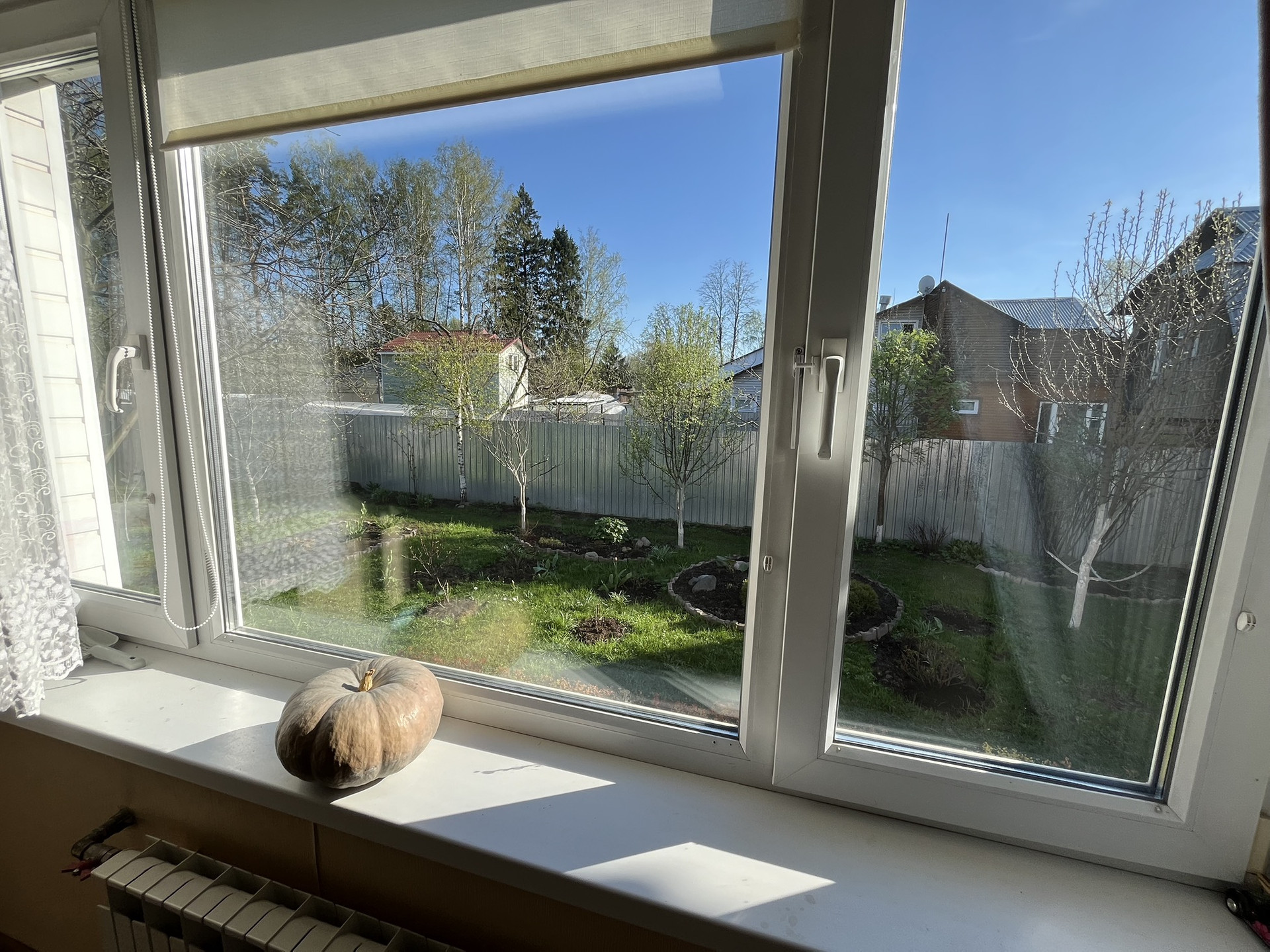 Правильной прямоугольной формы, с завезенной плодородной землей, много лет был задействован по прямому назначению. Плодородных деревья (яблони, груши, черешня, слива) и кустарники (смородина, ежевика, малина) с ежегодным урожаем, а также цветочные растения.
