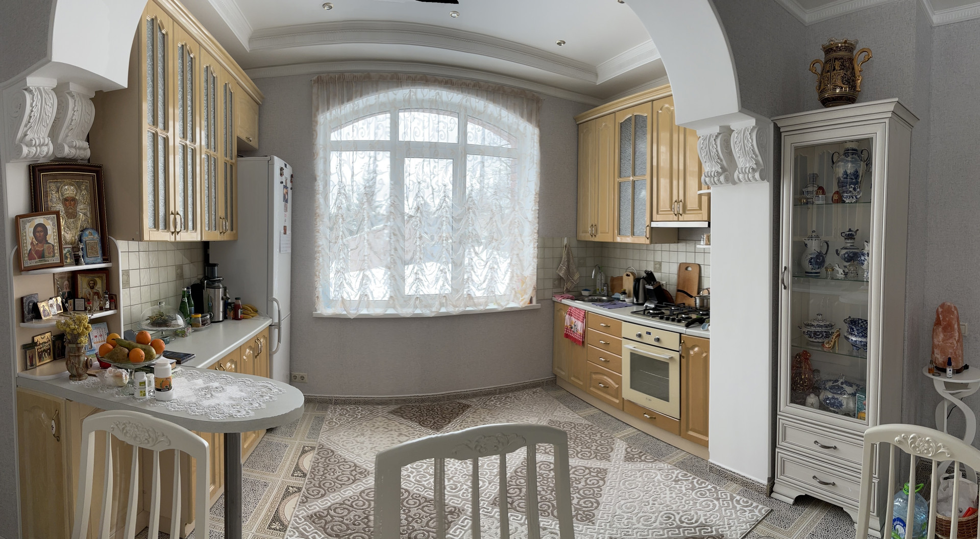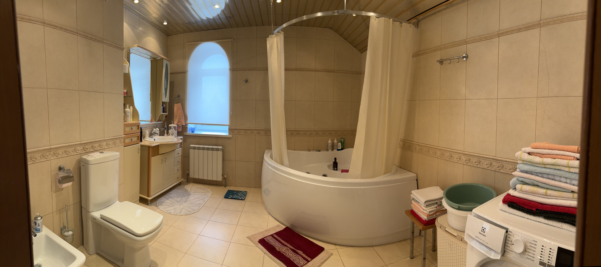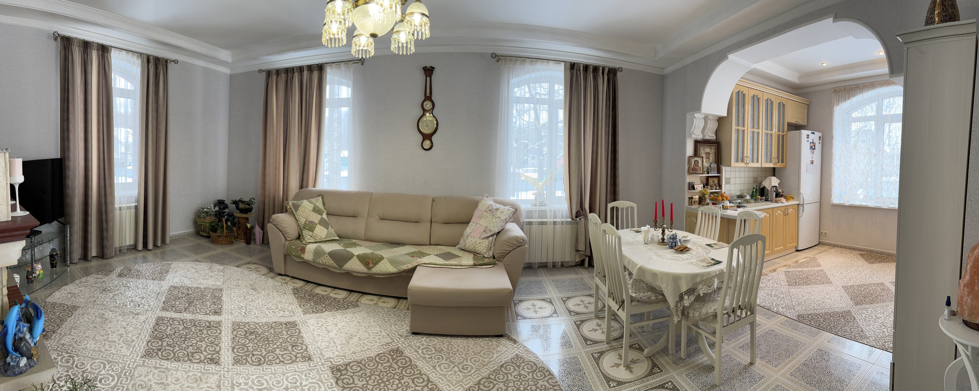 1 этаж: кухня-гостиная с действующим камином 37,9 м2, комната 29,8 м2, с/у 3м2, холл 22,8 м2. Высота 1 этажа 2,93 м. Полы с подогревом. Мебель на кухне.