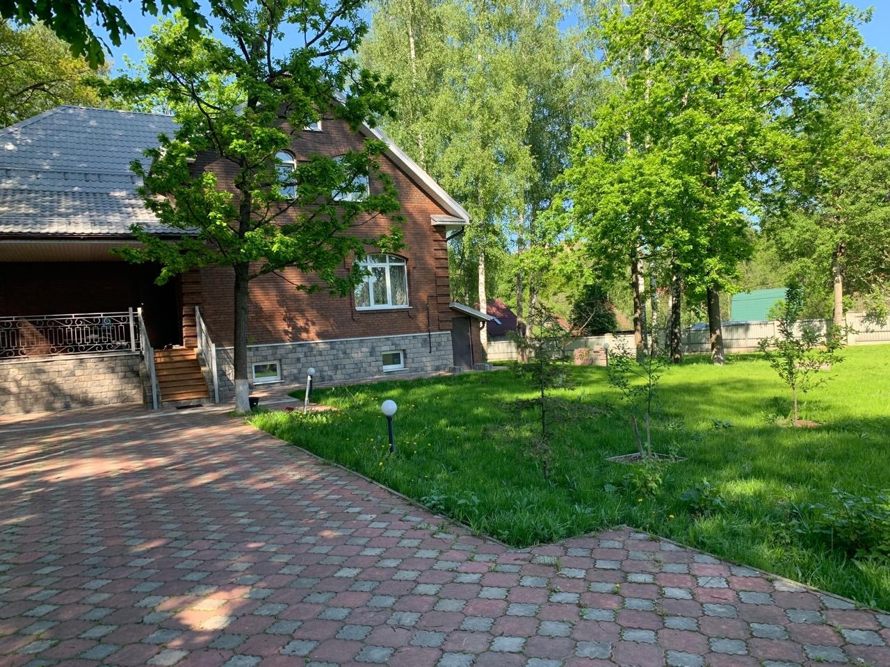 Материал дома кирпич, дом-баня - брус.