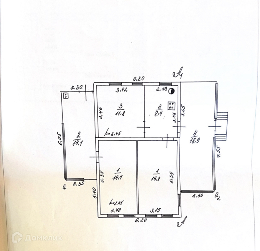 Продается участок с домом  65.2 кв.м., жилая 43 кв.м., кухня 8.4 кв.м.