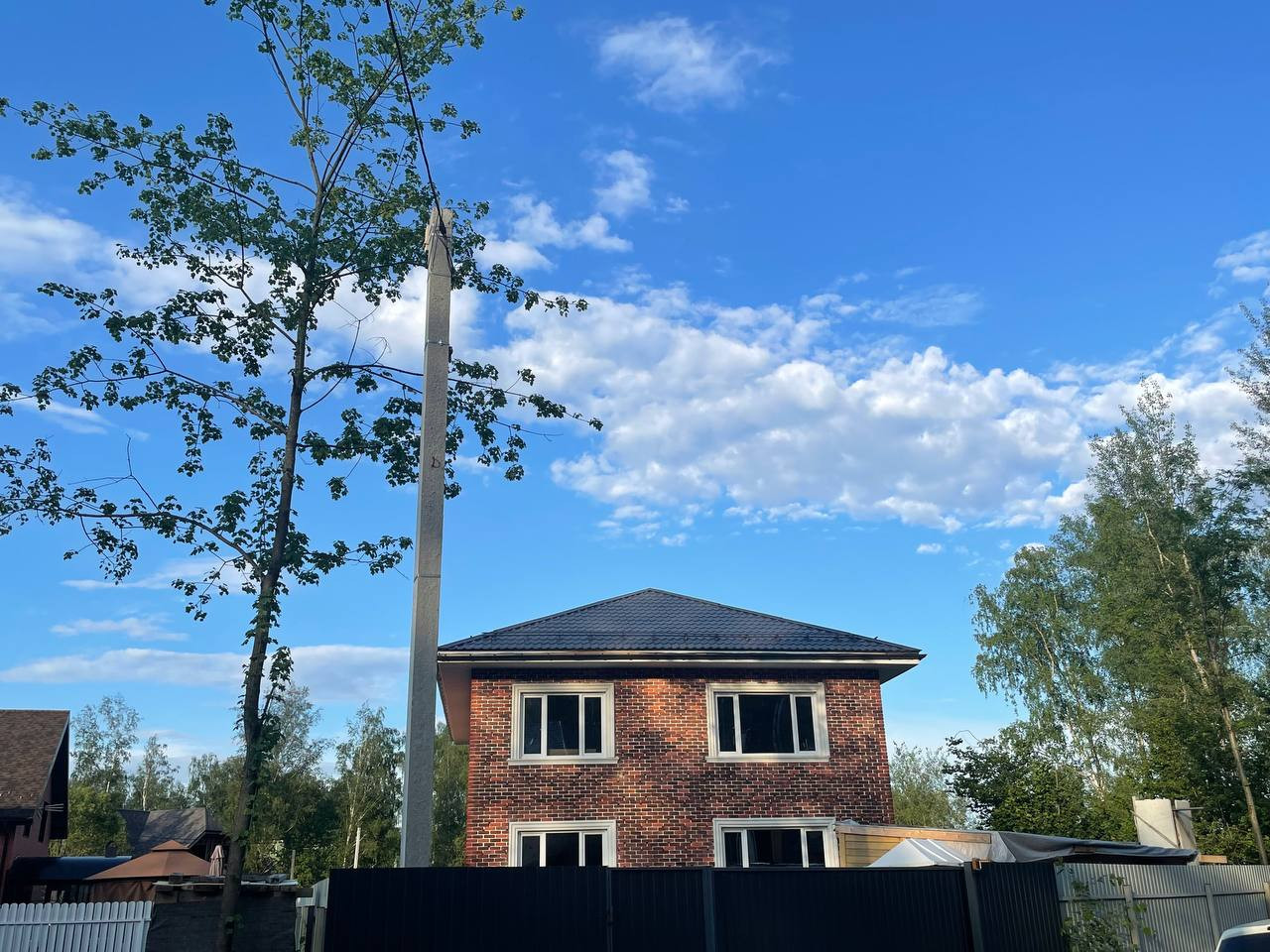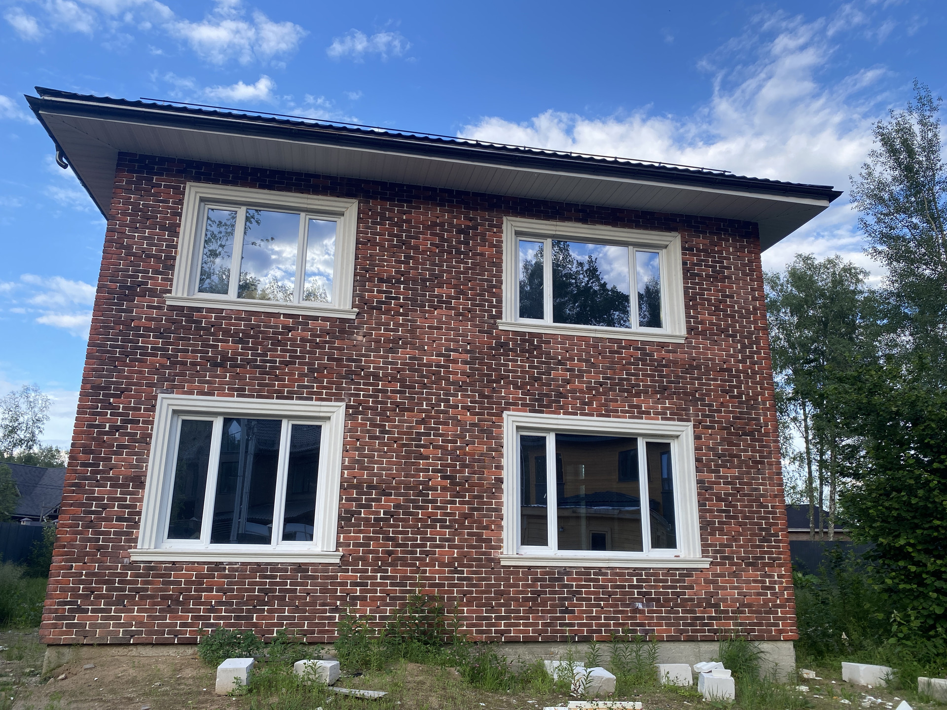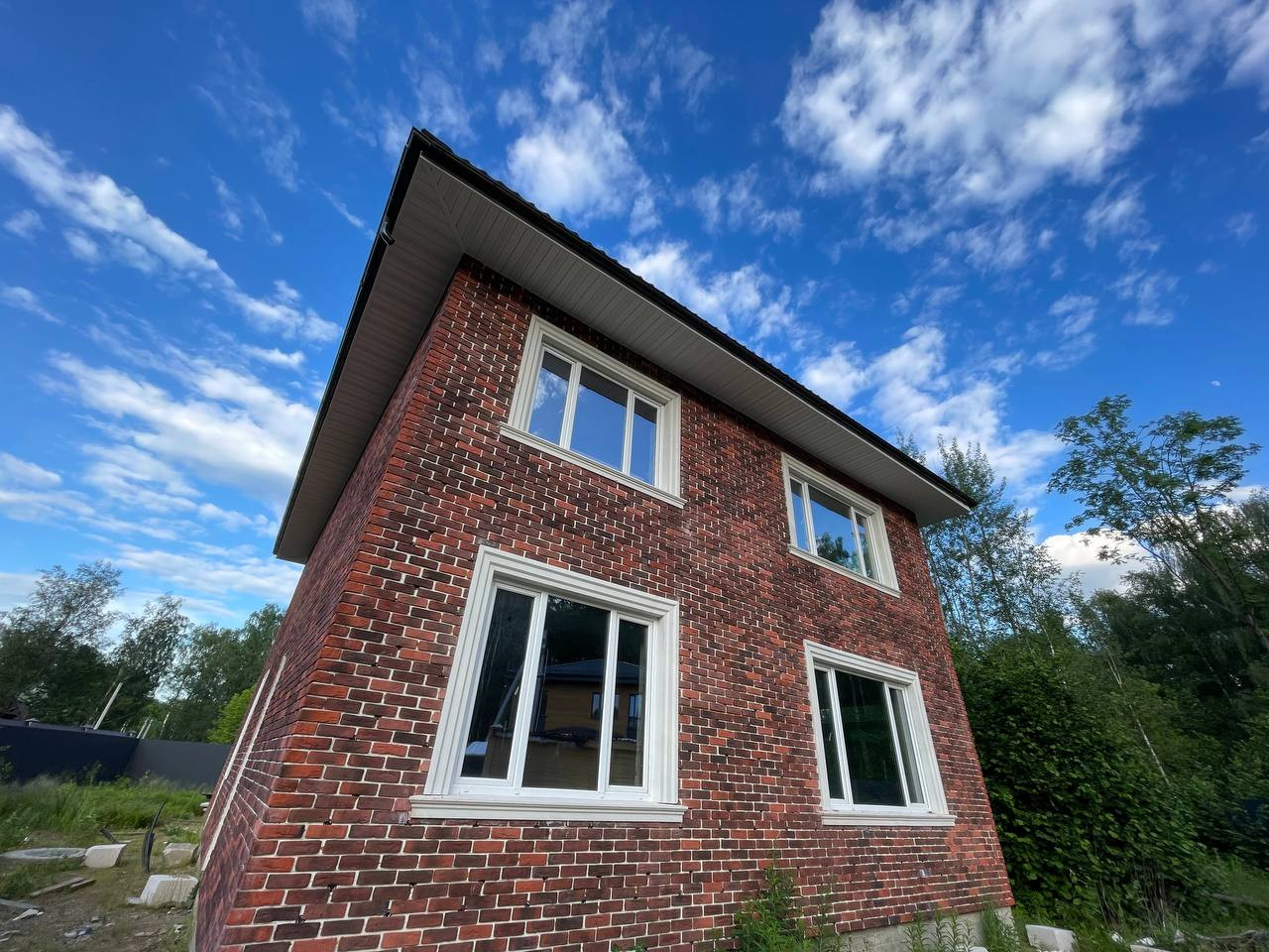 Дом на фундаменте из монолитной плиты на сваях, стены- газобетонный блок, толщина стен 40 см. перекрытия из монолитных плит, монолитная лестница на второй этаж. Кровля с утеплением, в окнах установлены трехкамерные стеклопакеты. Гостиная со вторым светом и возможностью установки камина. По проекту в доме будет 4 спальни и 4 санузла ( 3 хозяйских и 1 гостевой ). Электричество от столба, расположенного на участке, счетчик на столбе. Участок огорожен забором с электрическими воротами, управляемыми пультом ДУ. Магистральный газ по границе участка. Покупателю дизайн- проект в подарок! Адрес: МО, Химки, кв-л Вашутино, уч 814