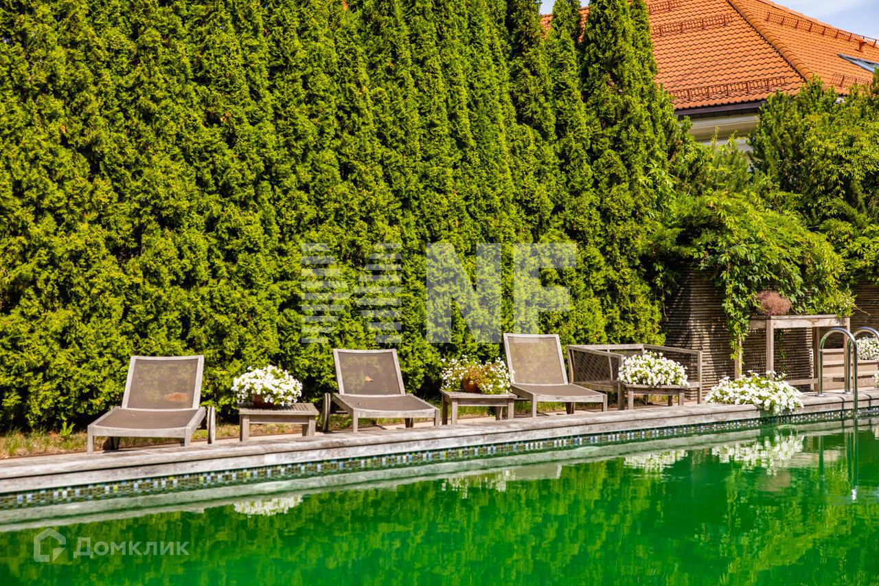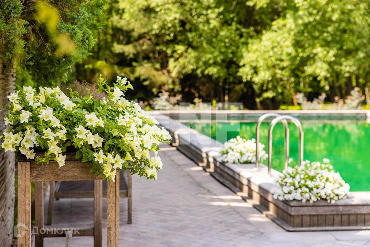 На земельном участке площадью 2,6 Га создан настоящий парковый ансамбль с искусственными озерами, тенистыми аллеями и живописным ландшафтом. Дополнительно обустроен летний бассейн и spa-комплекс. На территории также гараж на 8 машиномест, гостевой домик 110 кв.м., помещения для персонала.