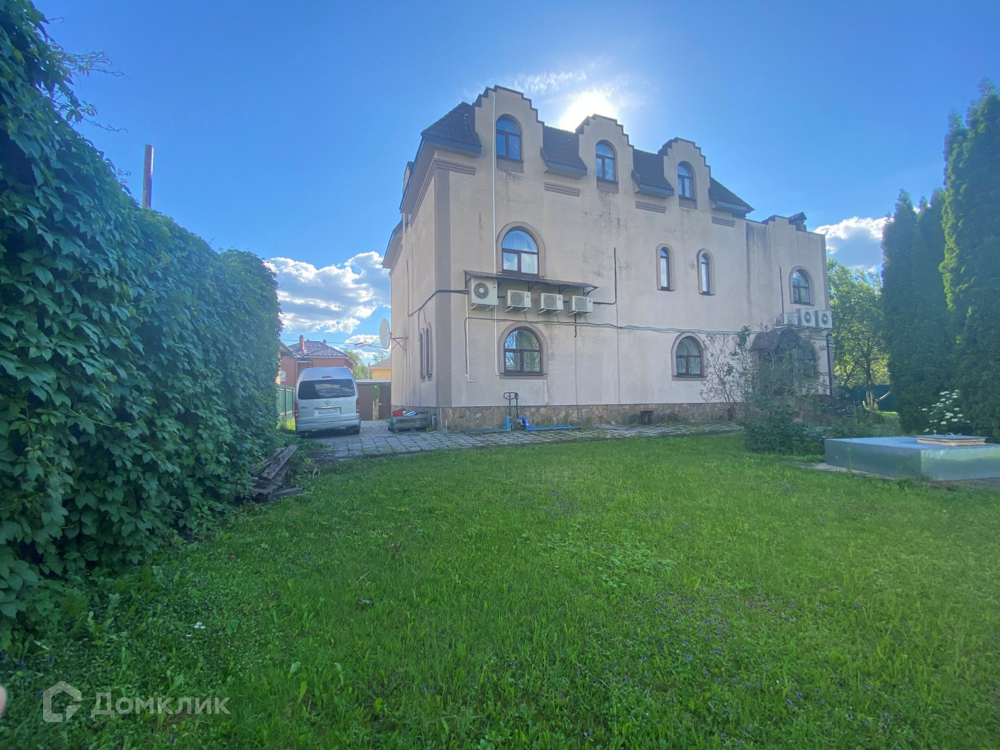 Продается трехэтажный кирпичный дом с бетонными перекрытиями  + цокольный этаж.  Категория земель - земли населенных пунктов, для ИЖС. Два заезда для автомобилей - теплый отапливаемый гараж и площадка для парковки на территории. Выполнен евроремонт, есть вся необходимая мебель и бытовая техника. Установлены кондиционеры. Есть действующий камин. Может использоваться и под офис. Подведены центральный коммуникации - магистральный газ и электричество. Вода скважина на территории, канализация септик. Установлен газовый котел . Джакузи. Земельный участок посажен плодовыми деревьями . Есть отдельный хоз. блок. Участок расположен у леса. Огороженная территория. Въезд через два пропускных шлагбаума.