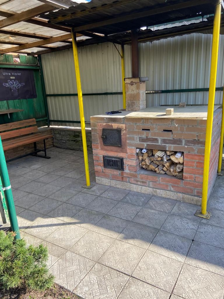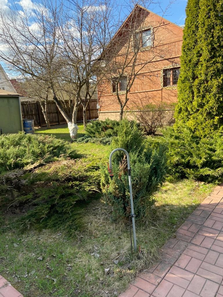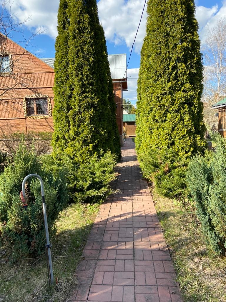 гараж, зона барбекю, хоз. постройка, беседка. Садовые деревья, кустарники.