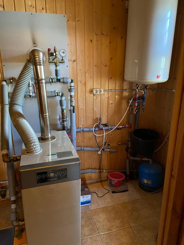 Отопление - котёл на жидком топливе (солярка).
