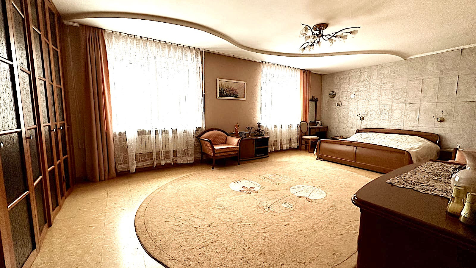 На втором этаже 150 м.кв. располагаются мастер спальня со своим сан узлом и вместительным шкафом во всю стену., кабинет, детская, комната отдыха и второй санузел, а также огромная застекленная лоджия, размером 20 метров.