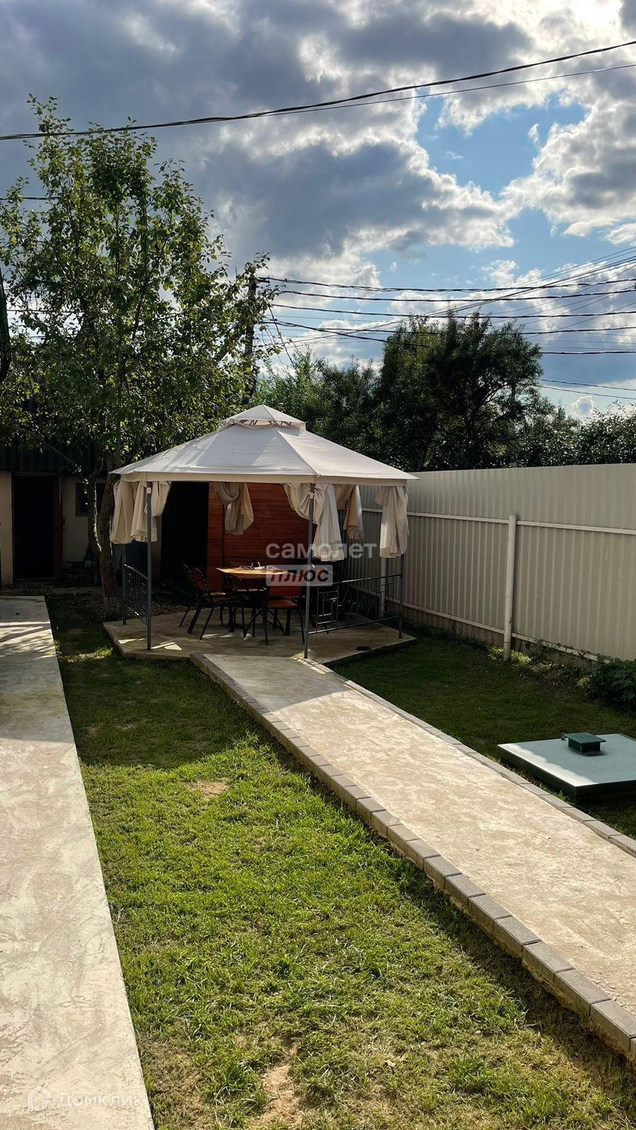 Участок огорожен из металлического проф. листа.