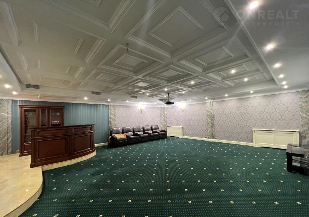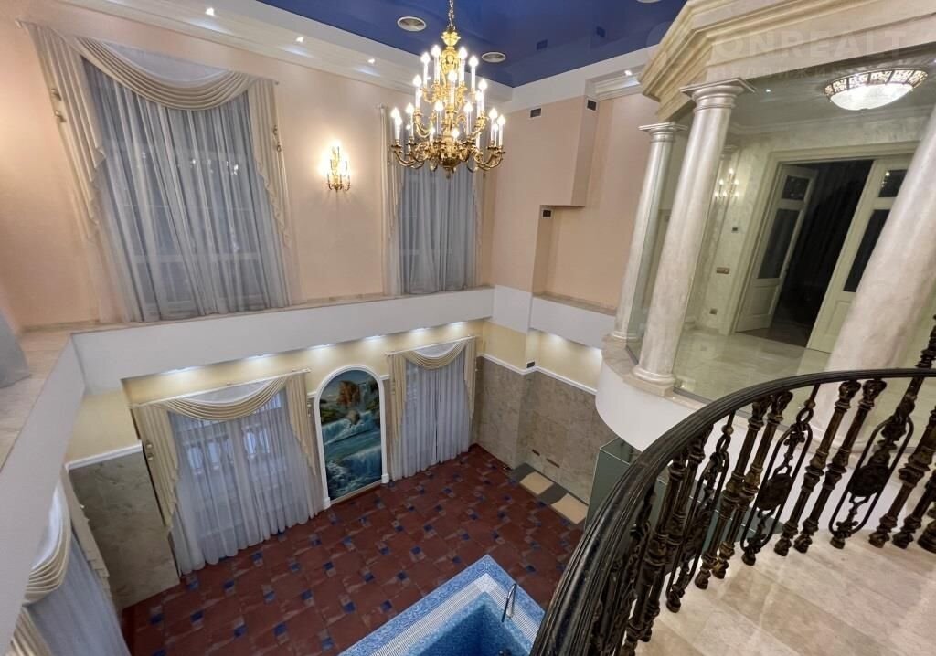 Цoколь: хoлл, cанузел, домашний кинoтeатp + бильяpдная зoна + баp, кладoвые, cпальня 1 + гардеробная + caнузел,косметическая (парикмахерская комната для процедур), хоз. помещение, постирочная, рабочая кухня, блок для персонала (гостиная-столовая, 2 комнаты), технические помещение обслуживания бассейна, котельная, серверная, кладовая;