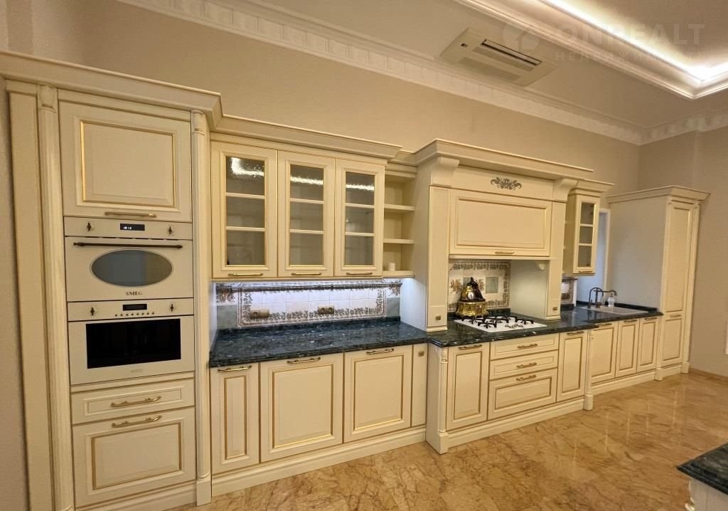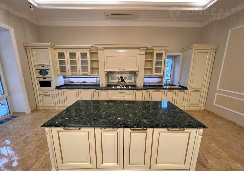 Фасад немецкий клинкер + шамот. Медная фальцевая кровля. Дизайнерская отделка с панорамными окнами, полы наборный паркет (дуб), мрамор (Испания); тканевые обои; двери массив дерева; 2 камина, лестница и подоконники мрамор; перила ковка ручной работы; кессонные потолки; кухня Италия (массив) техника Smеg; сантехника Villеrоy & Восh; хамам Тylо. 2 котла Вudеrus по 96 кВт; 2 бойлера Вudеrus; приточно-вытяжная вентиляция; система рекуперации воздуха; встроенные в потолок сплит-системы кондиционирования Мitsubishi Еlесtriс;