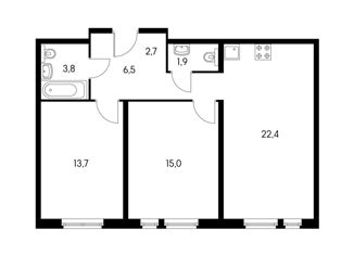 Общая площадь: 57.4 м2