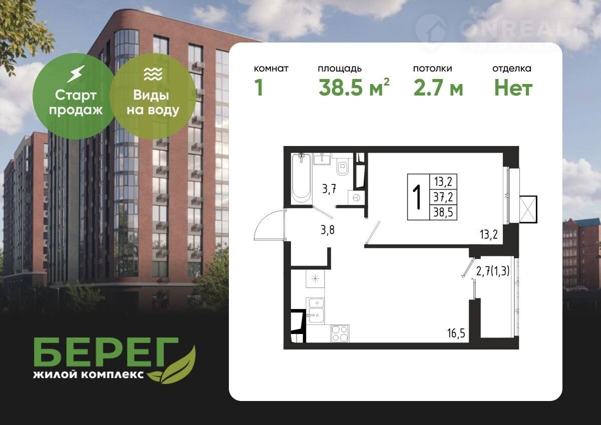 Продается 1-комнатная квартира №45 в новостройке ЖК «Берег» 2 очередь по адресу Химки Береговая улица  корпус 8. Общая площадь - 38.5 кв. мзастройщик —ООО "СЗ "МонтажСтрой". Безналичный способ оплаты, возможно купить в ипотеку.