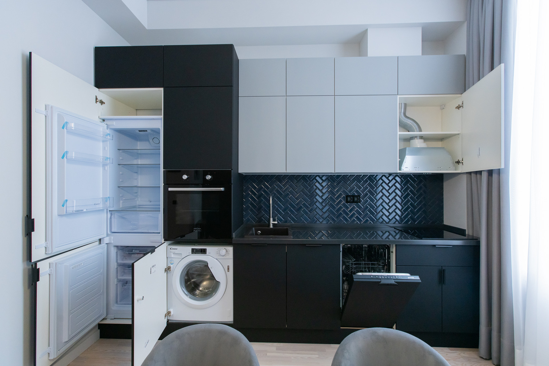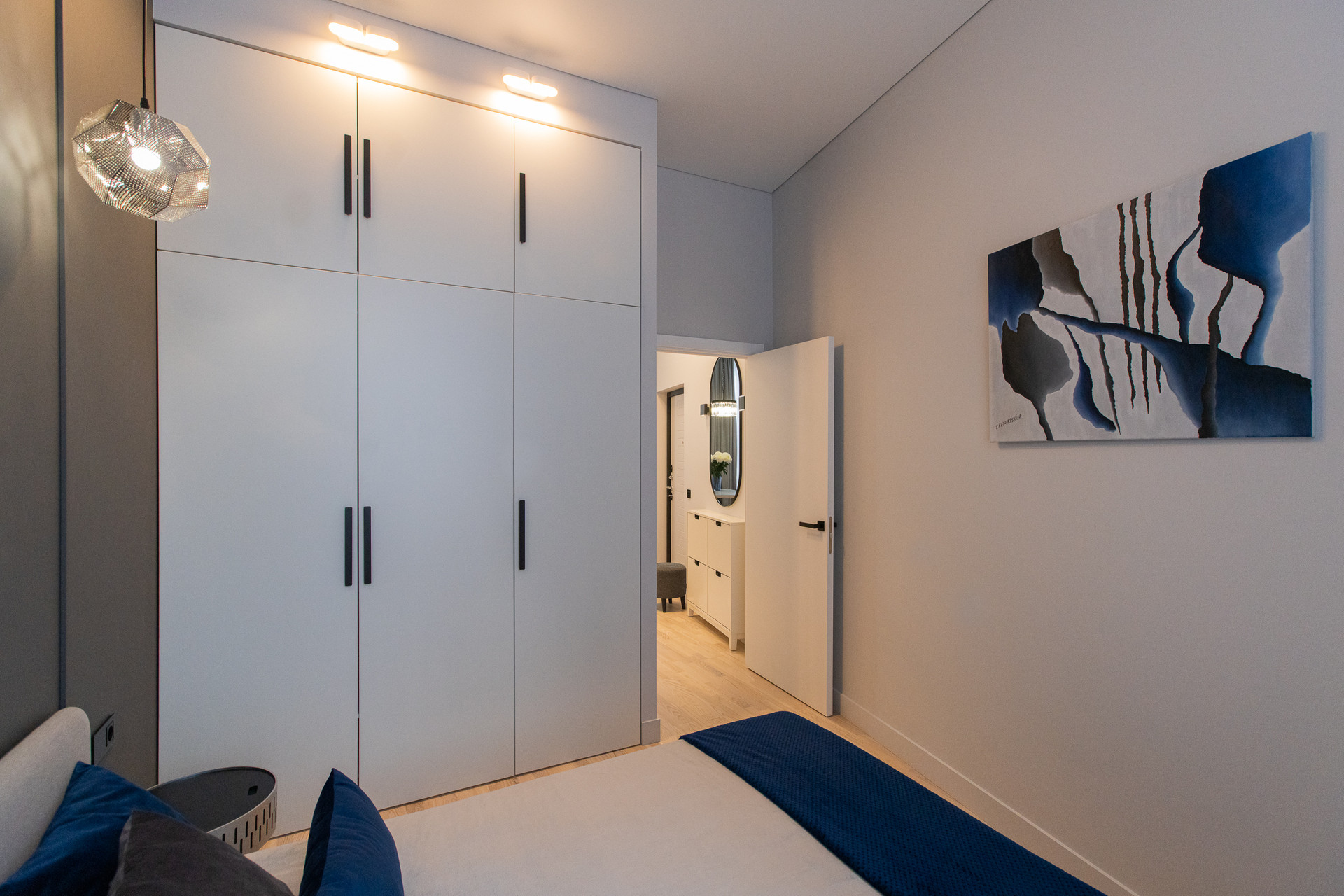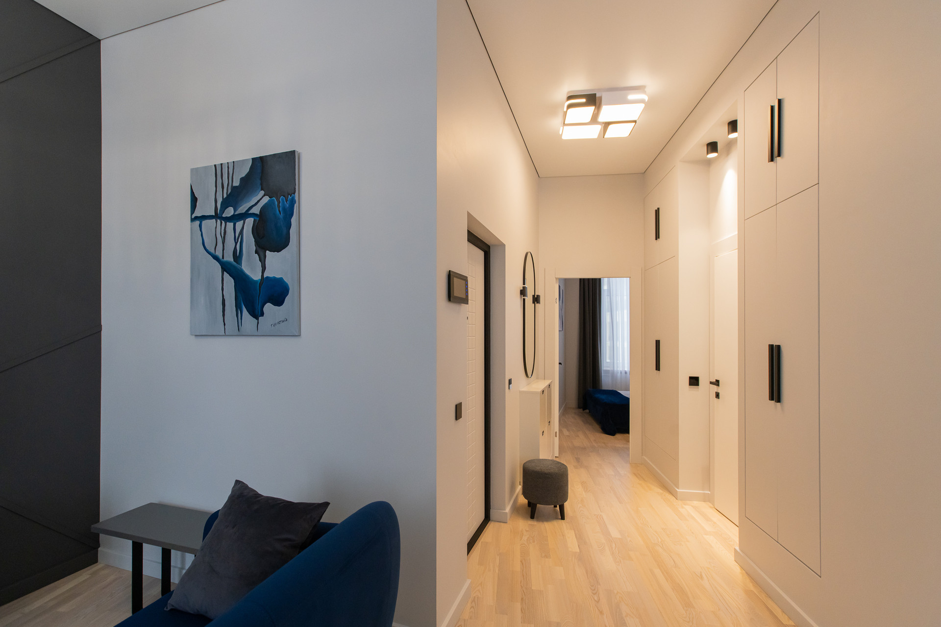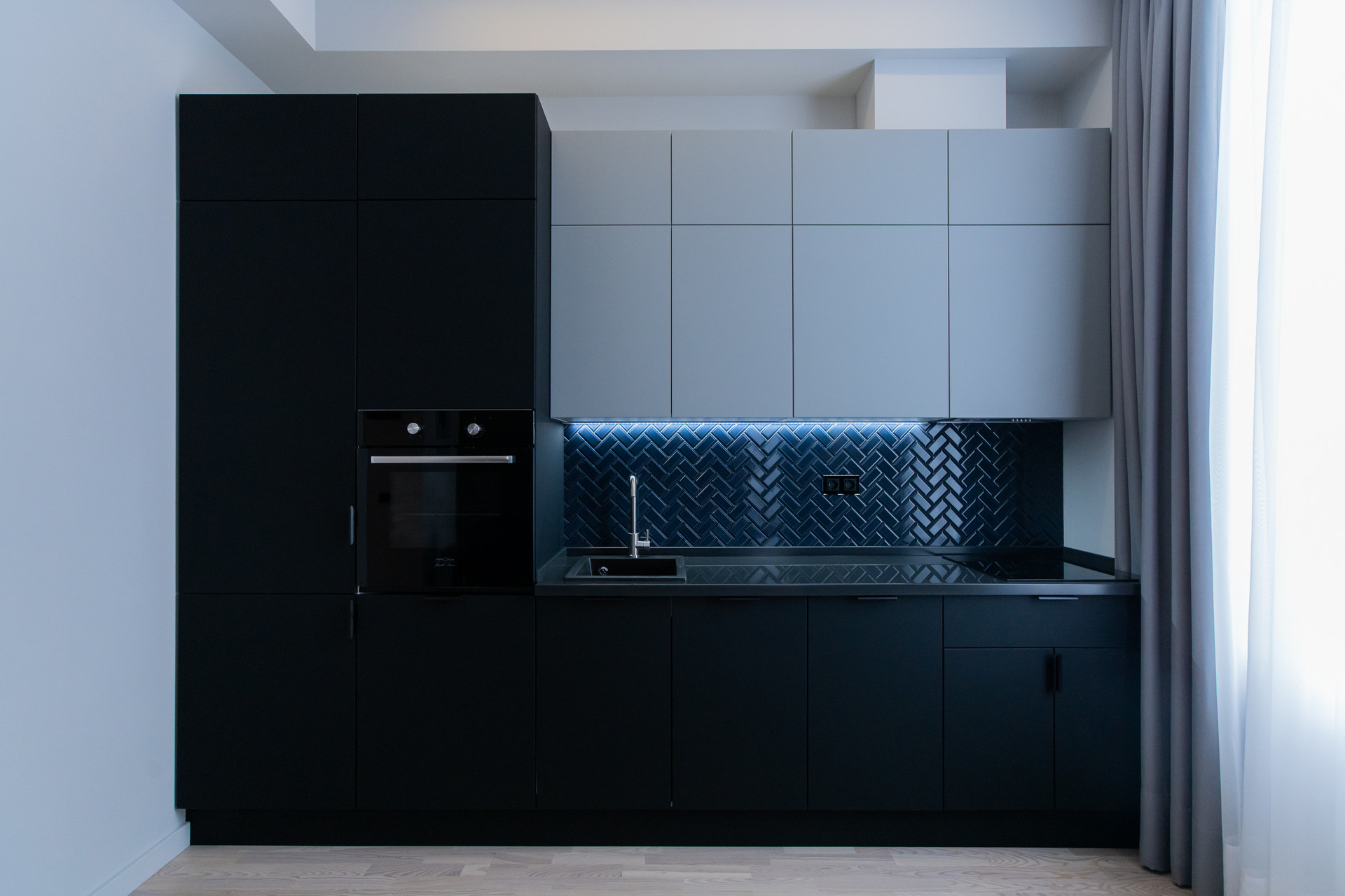Квартира с функциональной планировкой; кухня-гостиная, спальня, просторная ванная комната, балкон. Дизайнерский свет и мебель.