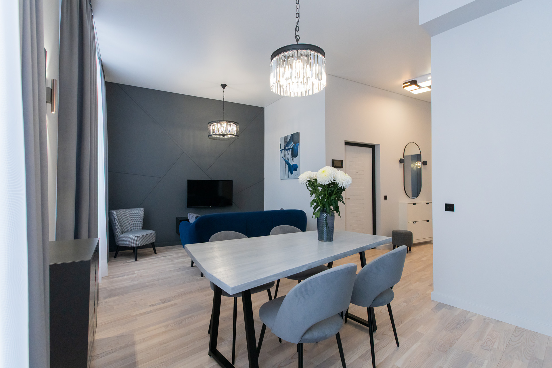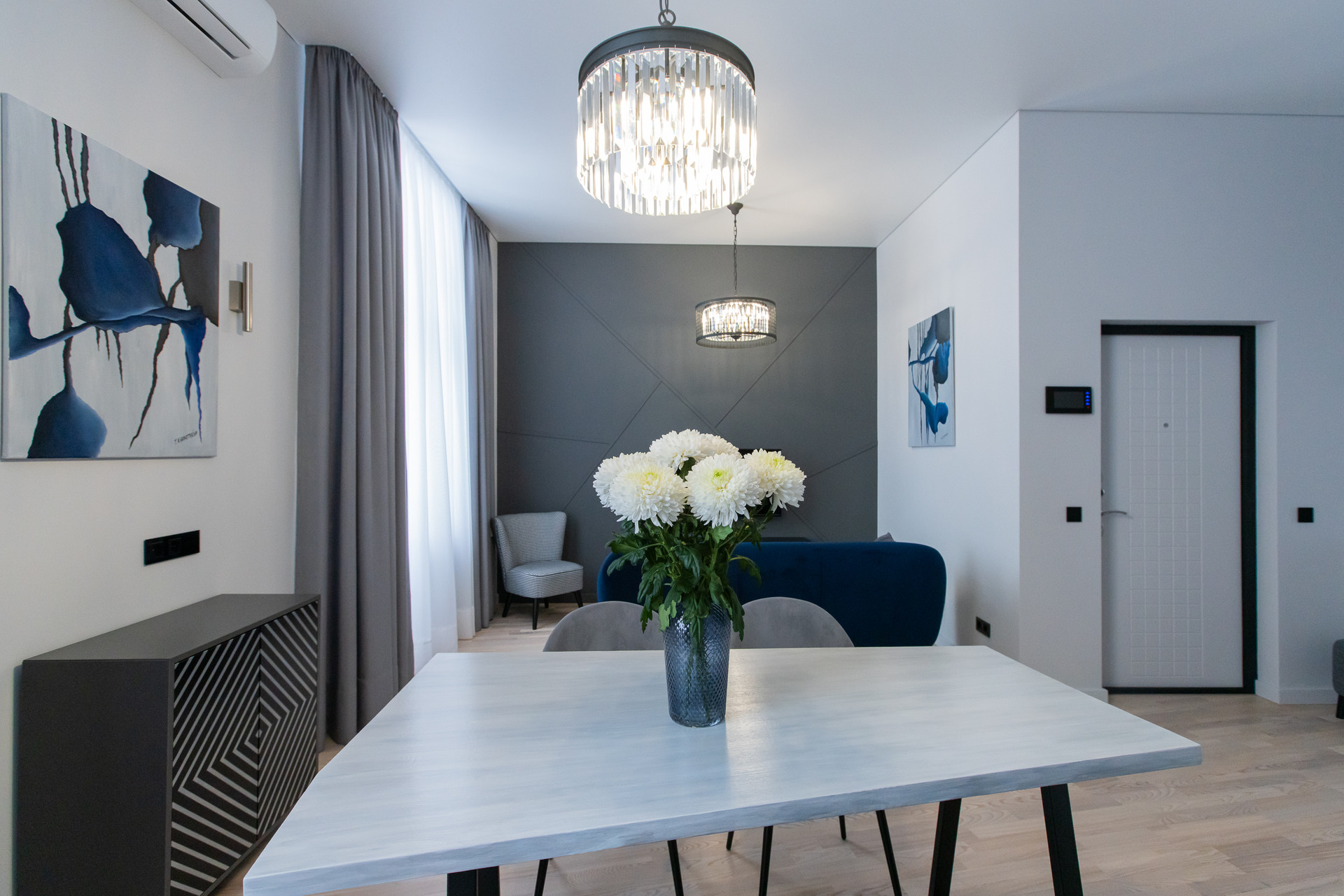 К продаже предлагается элегантная 2-комн. квартира в ЖК «Солнечная система». Выполнен профессиональный дизайн от известного дизайнера с полным авторским сопровождением проекта. Высокие потолки (3,3 м) и различные оттенки серого цвета придают интерьеру ощущение легкости и простора.