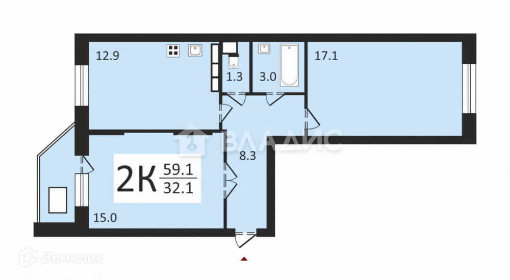 Жилая площадь 32.1 м2