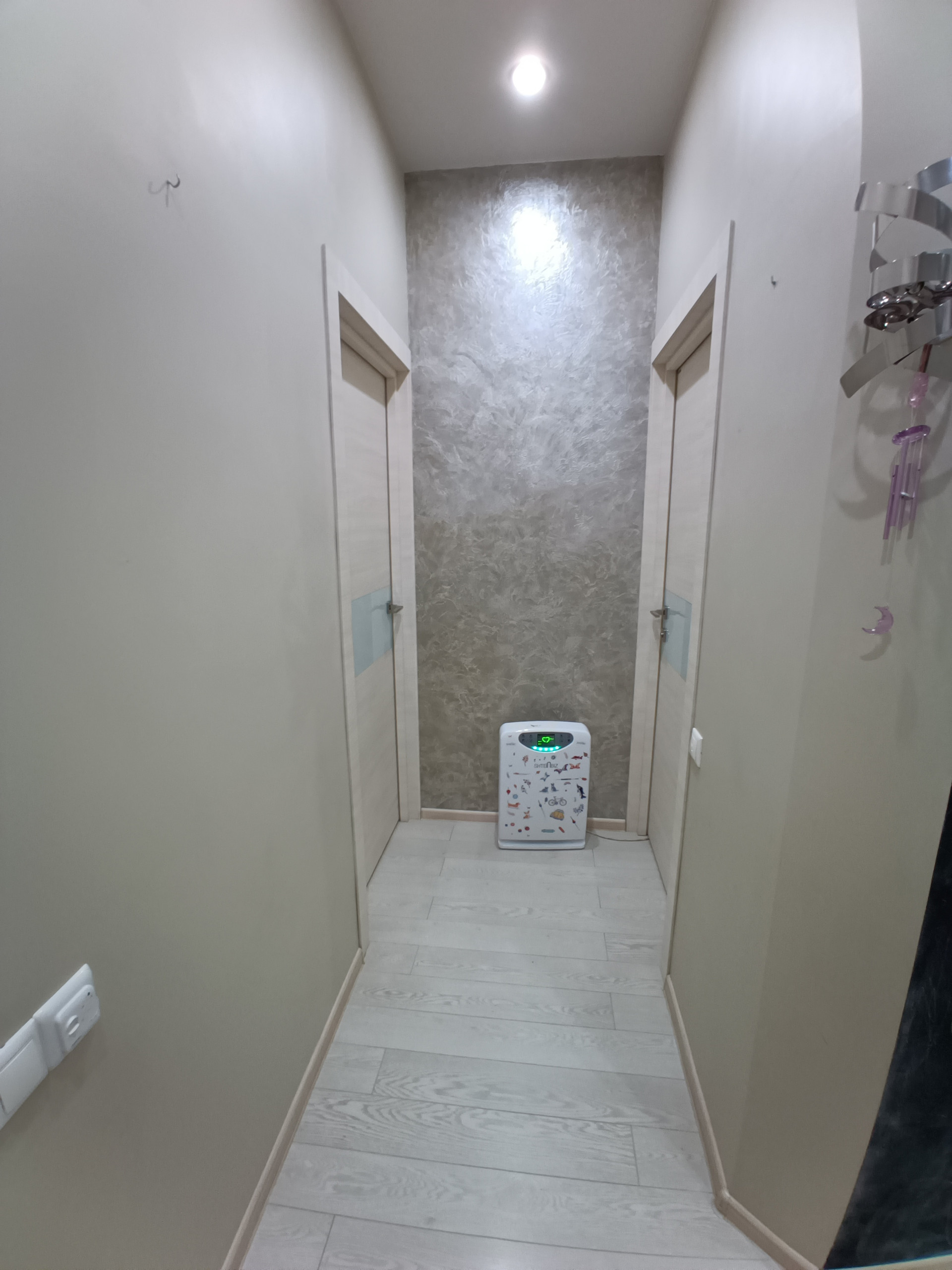 По планировке: кухня 15 м (установлен новый кондиционер) , спальня 14 м, детская 11 м, санузел с подогреваемым полом и бойлером (на случай отключения горячей воды). В каждой комнате установлены потолочные вентиляторы, в спальнях и на потолках выполнена звукоизоляция. Вся квартира с ИК полами (греются).в прихожей установлены проходные выключатели (не нужно снова идти к двери, чтобы выкл свет). Стены покрашены моющейся краской Тиккурила в некоторых местах Венецианской штукатуркой, поэтому при желании можно все перекрасить под себя. Так же окрашена отдельная стена для рисования и магнитов, родители оценят.