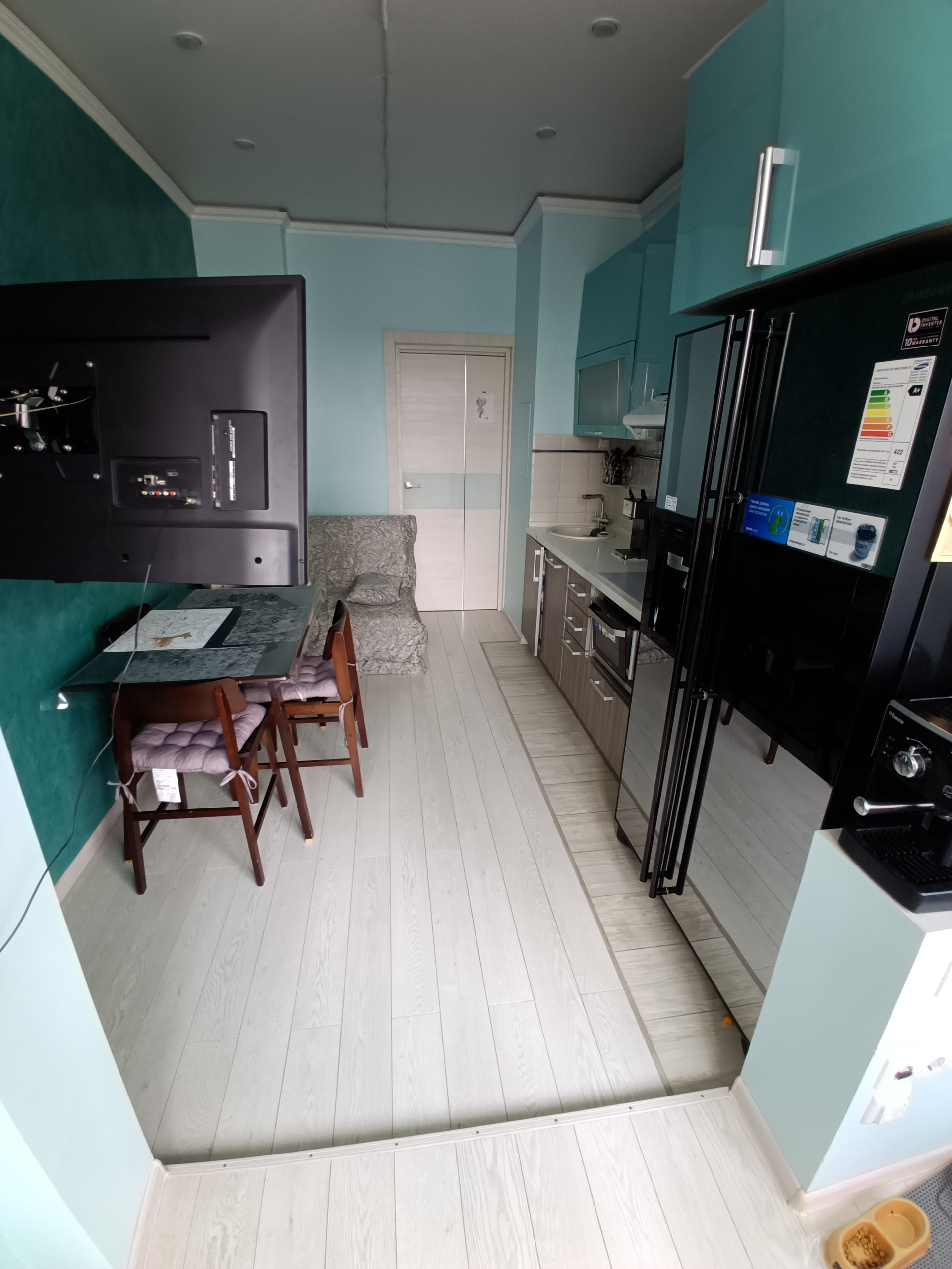 Состояние отличное, квартира ухоженная, светлая. На кухне установлена посудомойка Кертинг, 2х дверные холодильник Samsung с барной дверкой и ледогенератором, так же установлен измельчитель отходов под раковиной и 6ти ступенчатым фильтром. Индукционная плита и духовка с СВЧ Samsung. Мебель обсуждается.