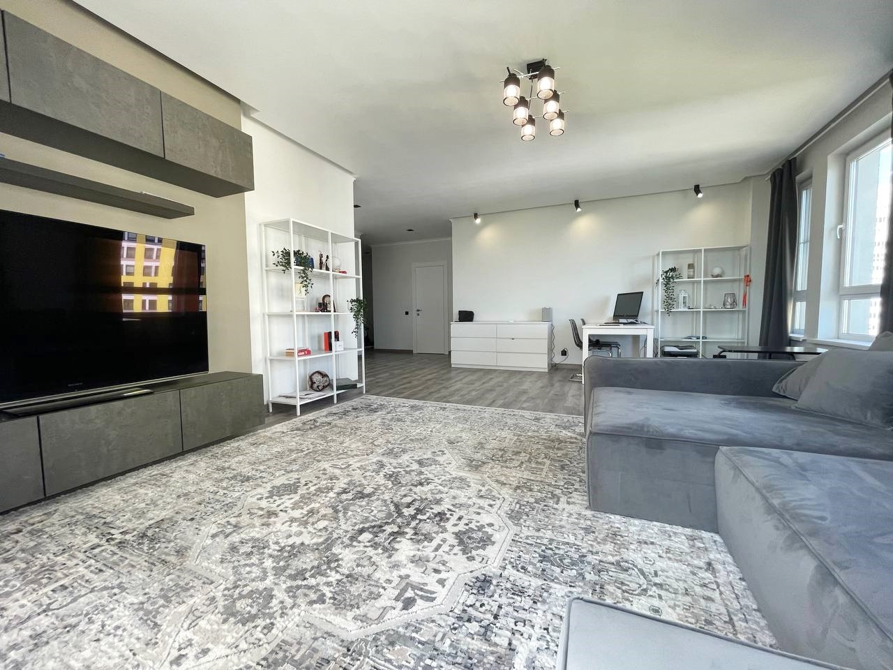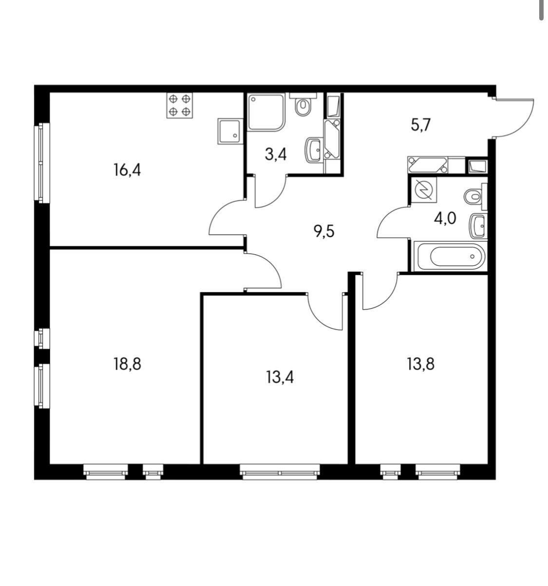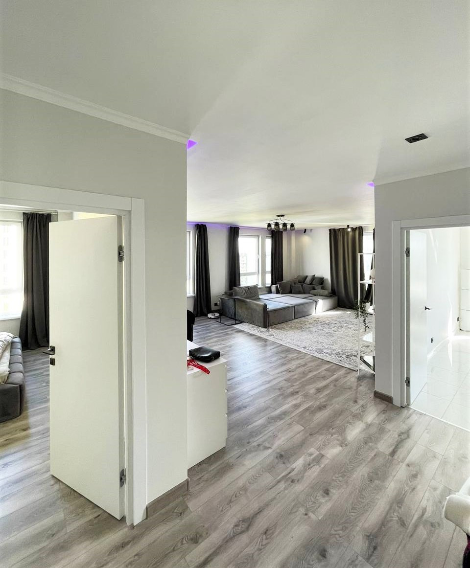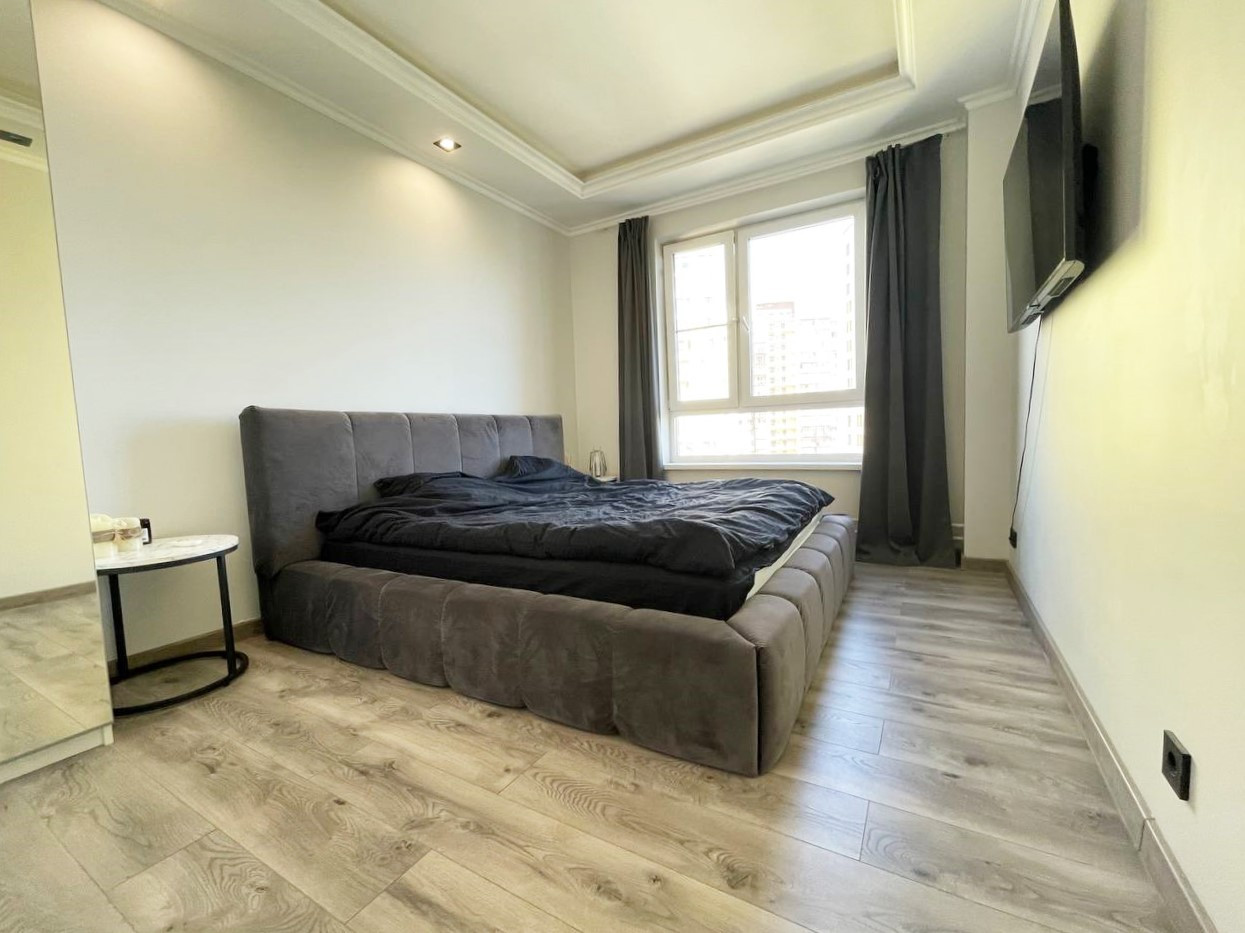 Продается просторная 3-комнатная квартира 82,4 кв.м в монолитном доме 2018 года постройки. Сделаны две изолированные комнаты 13,8 кв.м и 32,2 кв.м (смотрите на плане квартиры: между комнатами 18,8 кв.м и 13,4 кв.м не возвели перегородку), просторная кухня 16,4 кв.м, большой холл 15,2 кв.м, санузел 4 кв.м и постирочная 3,4 кв.м. Сделан качественный ремонт с использованием дорогих материалов, второй свет, кондиционер, посудомоечная машина. Квартира продается с мебелью, со встроенной кухней. Дом построен по индивидуальному проекту. Уютный внутренний двор с детскими площадками, набережная, парк - замечательные условия для прогулок с детьми!