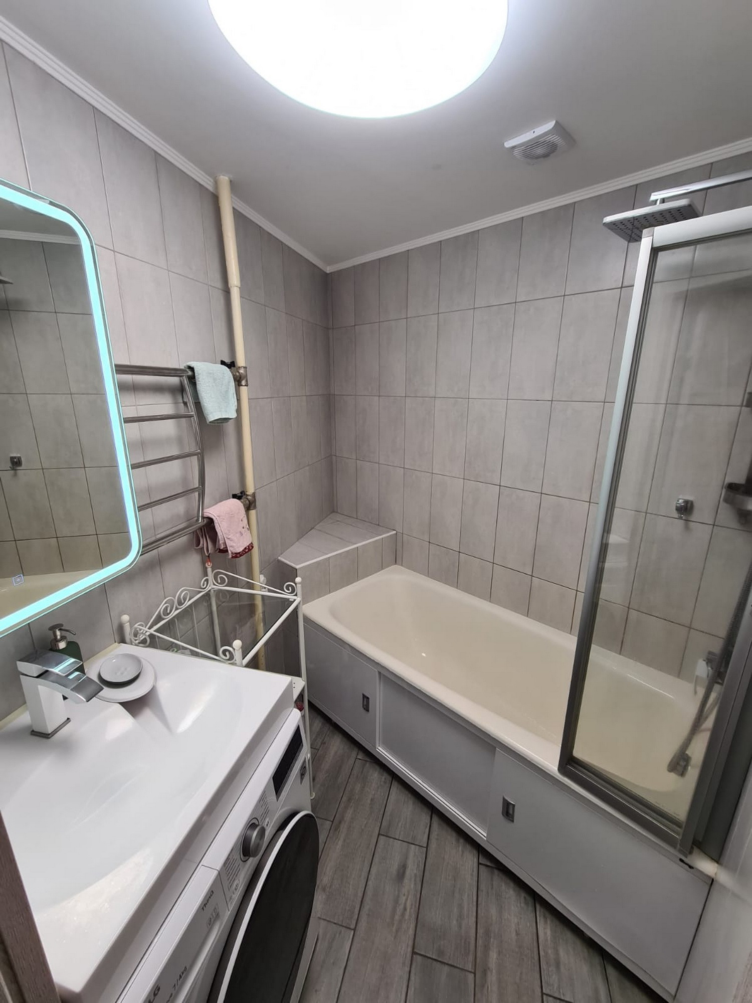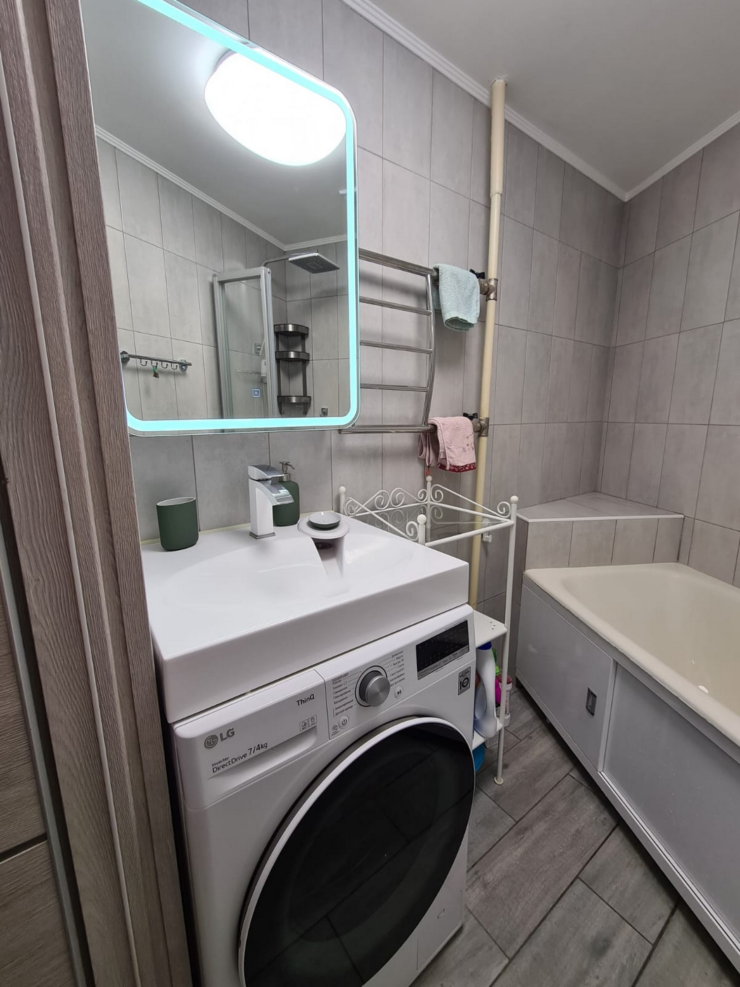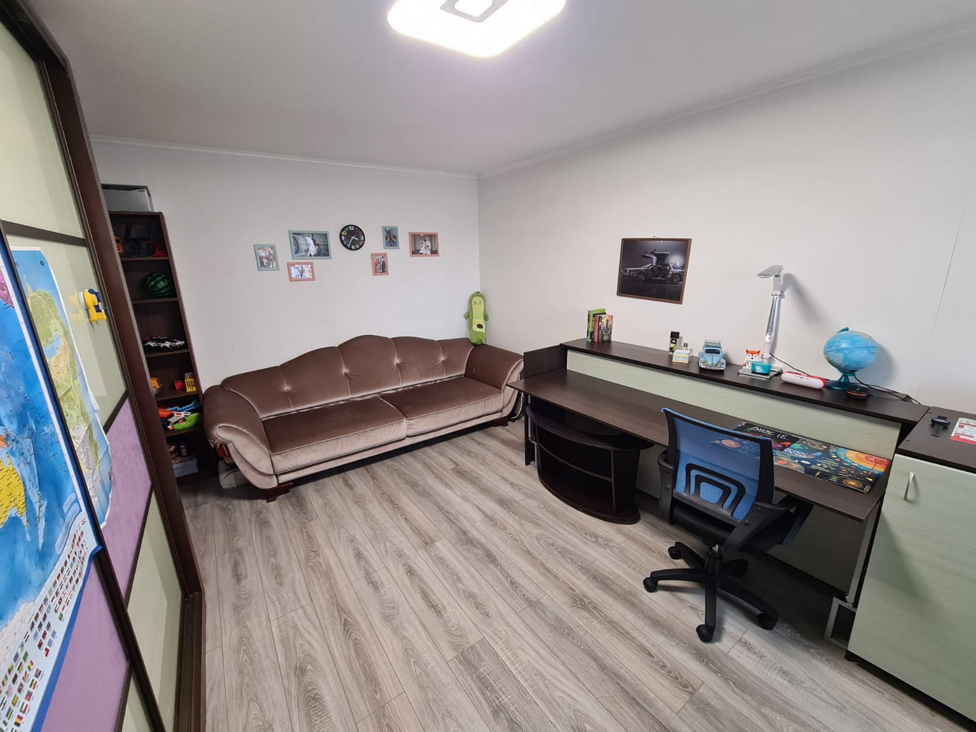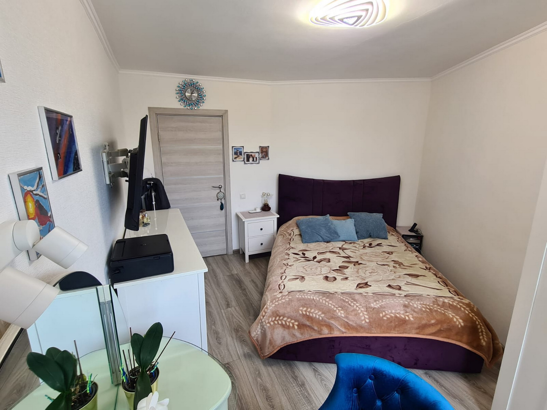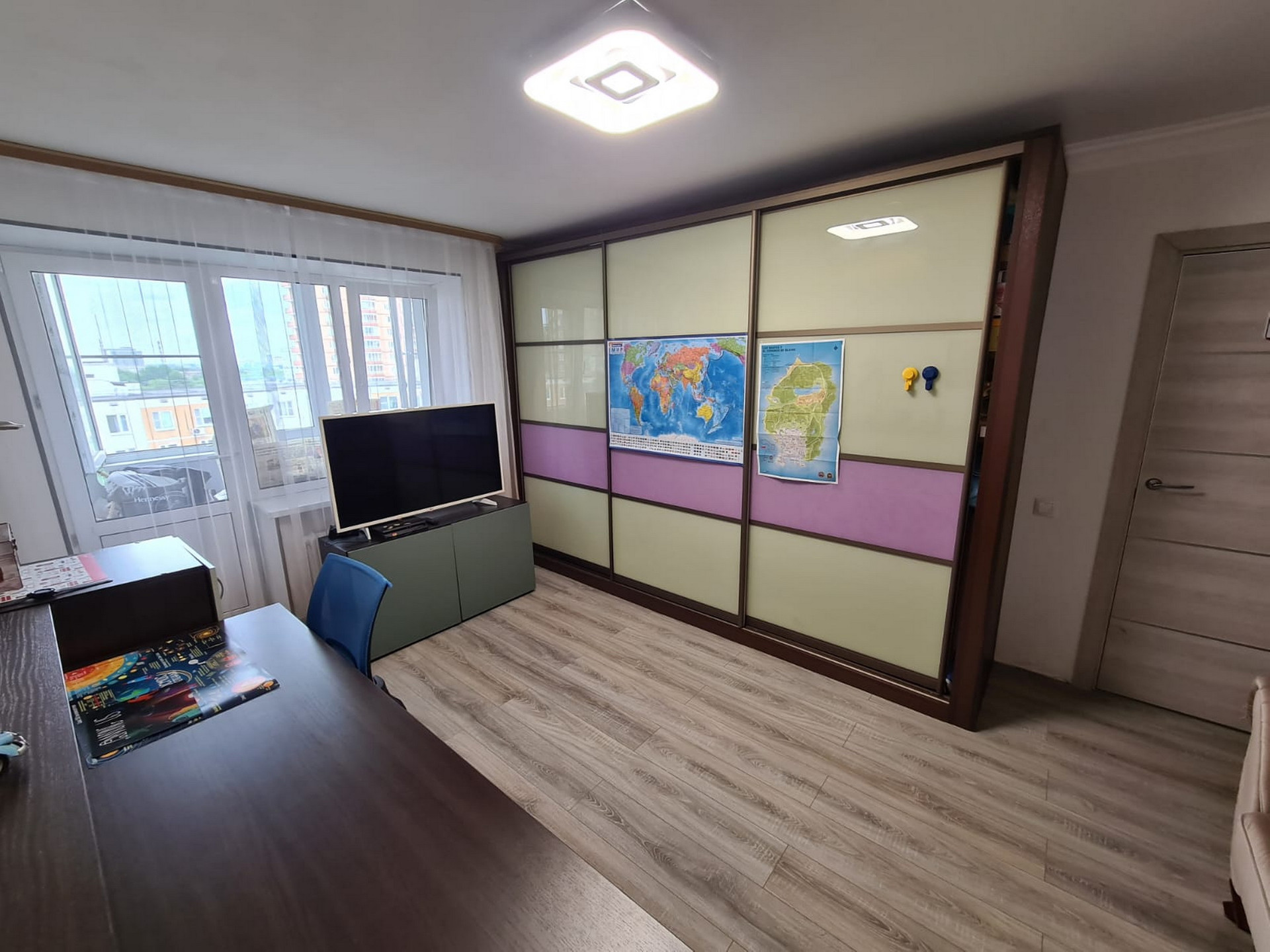 Квартира состоит из: кухни – 8 кв.м, просторного коридора – 7 кв.м, раздельных комнат: зала – 18 кв.м. и спальни- 12 кв.м, раздельного санузла, есть большая вместительная лоджия с панорамным видом. Квартира очень светлая и уютная, продуманная планировка. Хороший чистый подъезд. Порядочные соседи. Что немаловажно. Во дворе есть стихийная парковка, но всегда есть место, где припарковаться.