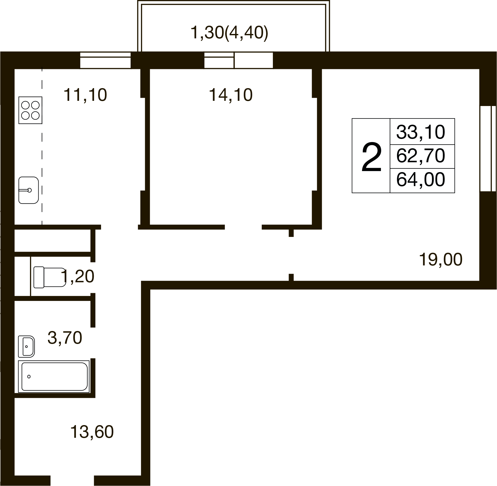Общая площадь 63.3 м2