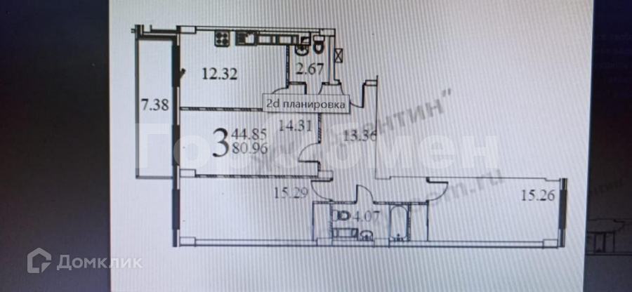 Жилая площадь 44.9 м2