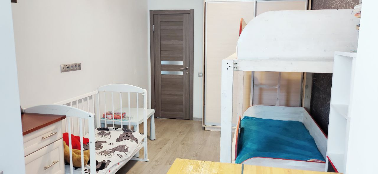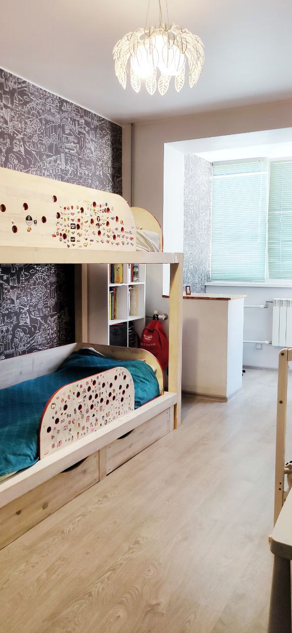 Очень функциональная планировка, которая включает в себя: изолированную спальню с выходом на лоджию; изолированную комнату оборудованную под детскую так же с выходом на лоджию; изолированную кухню; гардеробную комнату; раздельный с/у; просторный коридор-холл.